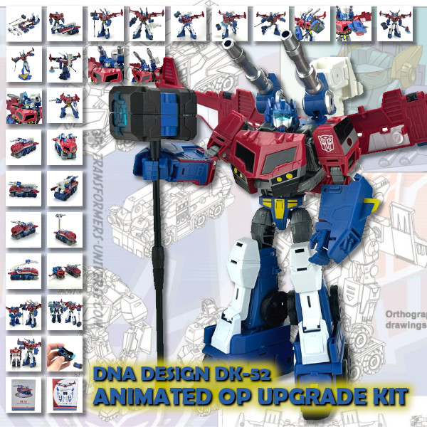 Prelude: Transformers Animated was one of the greatest Transformers TV shows ever, but sadly it was cancelled after three seasons, leaving the story incomplete. Among other things it was revealed that the never-produced fourth season would have included a Powermaster-style upgrade for Optimus Prime. Now this upgrade has been released by third party company DNA Design for the Legacy United Animated Optimus Prime figure. Fifteen years too late, but better late than never. So let’s say go!