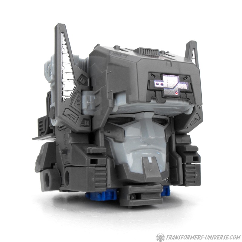 Cerebros Legs: Third and final component of this upgrade kit is a pair of new lower legs for Cerebros. They are grey instead of black, thus closer to the G1 original, and feature an extra gimmick in that you can fold back part of the shins in head mode, thus making for a somewhat slimmer head. This is the part of the kit you can safely leave inside the box. Not only is the added value somewhat dubious (did anyone really complain about FortMax’ head being too wide or Cerebros’ legs being too black?), the parts don’t really fit well in head mode. The heel spurs are being bent apart and the folded shin-halves don’t align properly. So while the idea behind it isn’t bad, I’ve given my Cerebros back his original legs after the photo session. Feel free to skip this part of the upgrades.
