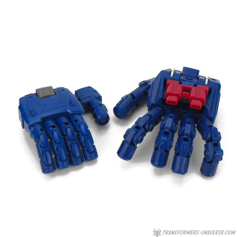 Hand Upgrade: The hands of Fortress Maximus were already pretty good with individually articulate fingers, but they lacked one of G1 FortMax’ signature features, the added guns in the backs of the hands. DNA gives us new hands that are not only a bit larger, not only far more articulate (three joints per finger, two per thumb), but also do contain those guns. They are mounted in a swiveling plate on the backs of the hands, somewhat similar to how they were installed on G1 FortMax. Of course the guns aren’t completely hidden when tucked in, but that’s just a minor thing. Add in the insanely well-articulated fingers and the hands are a winner. Just be aware that you need a very long, very thin screw driver to open up those forearms and install the new hands.