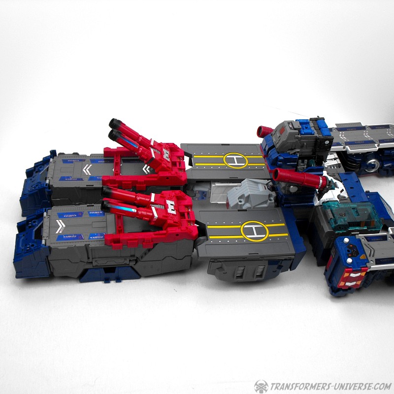Hip Guns: The main reason why I wanted this set is the hip guns. It simply isn’t Fortress Maximus without those huge hip guns. Since FortMax’ torso is still basically that of Metroplex, the hip guns are now external attachments. They hold pretty steady, though, and the barrels can extend. If you want to imagine them fully retracted, you can store them on the back of FortMax with the help of two tiny clips that attach to the big ramp. Very nicely done and a vast improvement for the robot mode, even more so than the hands in my book.