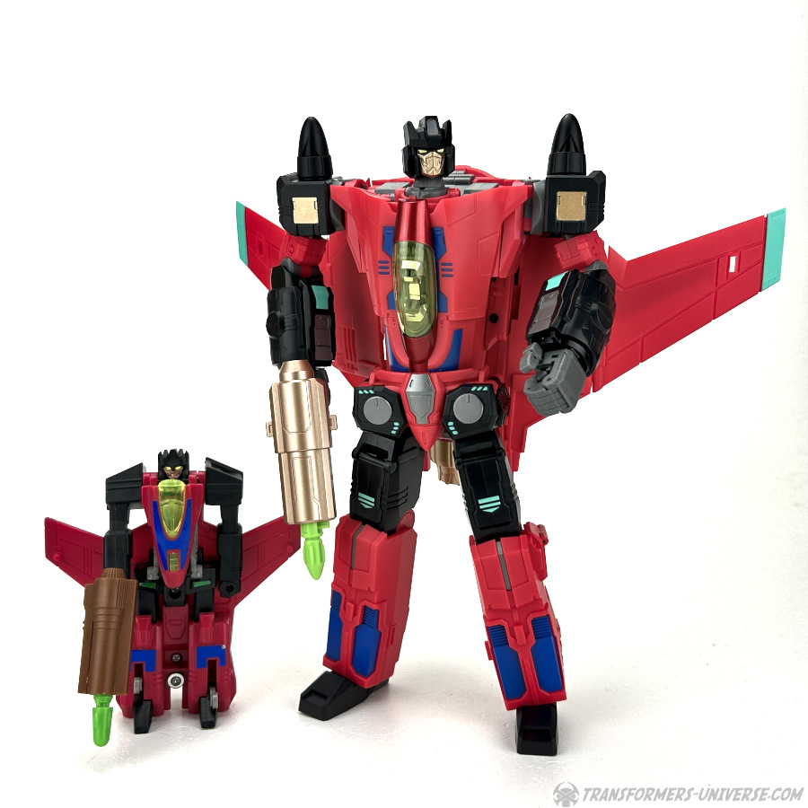 Fans Hobby didn’t really have any other jet Transformer ready to be retooled into their Snare, so reusing the same figure used for Marksman is okay, if not terribly original. It also pretty much cements that we’ll get Falcon as a Wingman-retool, the only question remaining is what kind of “man” he will be (I’d love it if they called him Birdman). Still hoping they’ll make a figure representing Energon Megatron for their mainline, which can then be retooled into Skyquake. We’ll see.