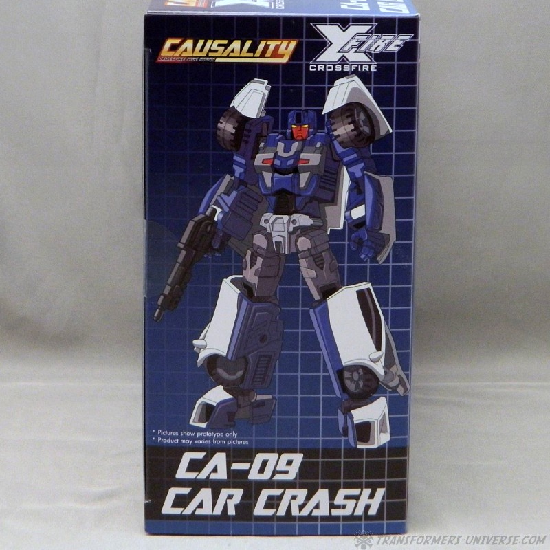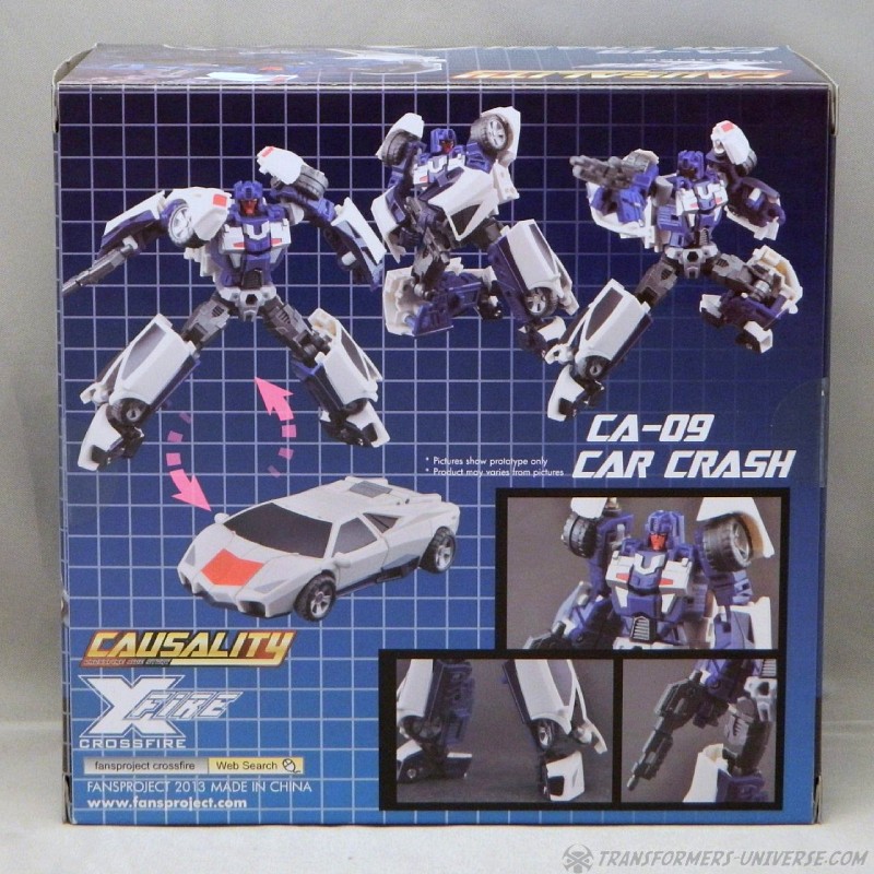 Remarks: For a long time Hasbro was not really all that interested in doing combiners, so third party companies were doing it instead. Fansproject started on their Stunticons (never coining an original name for them) with Car Crash, a third party version of Breakdown. Car Crash transforms from robot to car and can become a leg of the Intimidator combiner (aka Menasor).
