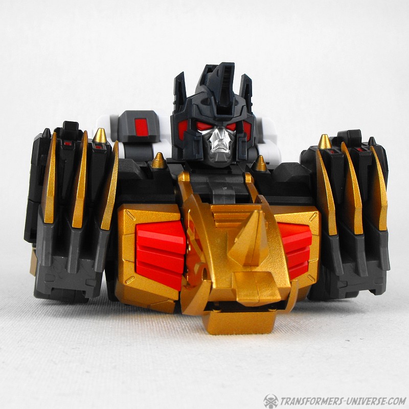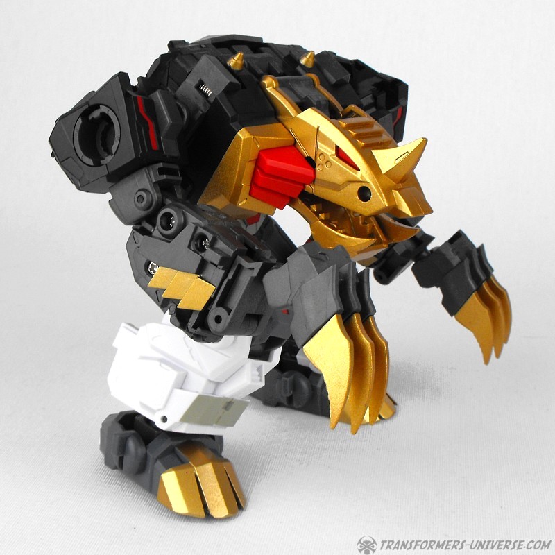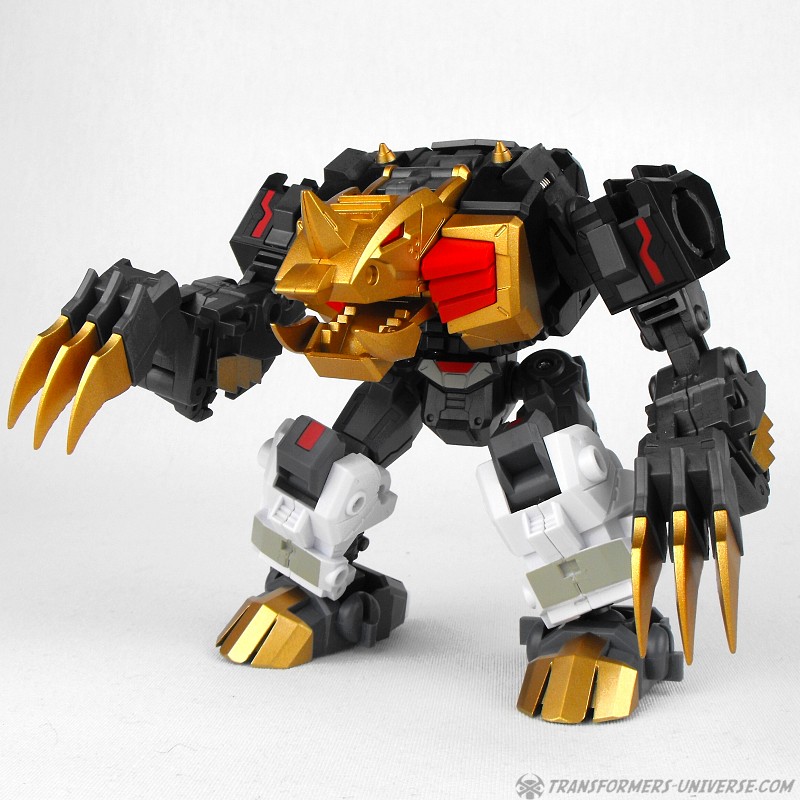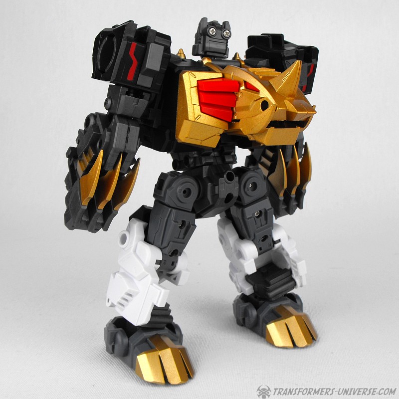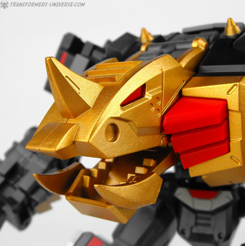 Alternate Mode: A rather minimalistic transformation turns a humanoid robot into robotic monster. Dinoichi basically just swivels his upper body around, unveiling the big monster head, and folds in his robot head. Flip out the claws, turn around the feet, and you’re done. Here, too, the resemblance to Kakuryu’s monster mode is pretty good. The monster itself... well, it’s a monster of some sort. Big head with big horn and teeth. It retains the full articulation of the robot and... yeah, that’s pretty much it. Personally I think I’ll leave Dinoichi in robot mode most of the time and not bother with this alternate mode, but it does work as intended and homages the original. So mission accomplished.