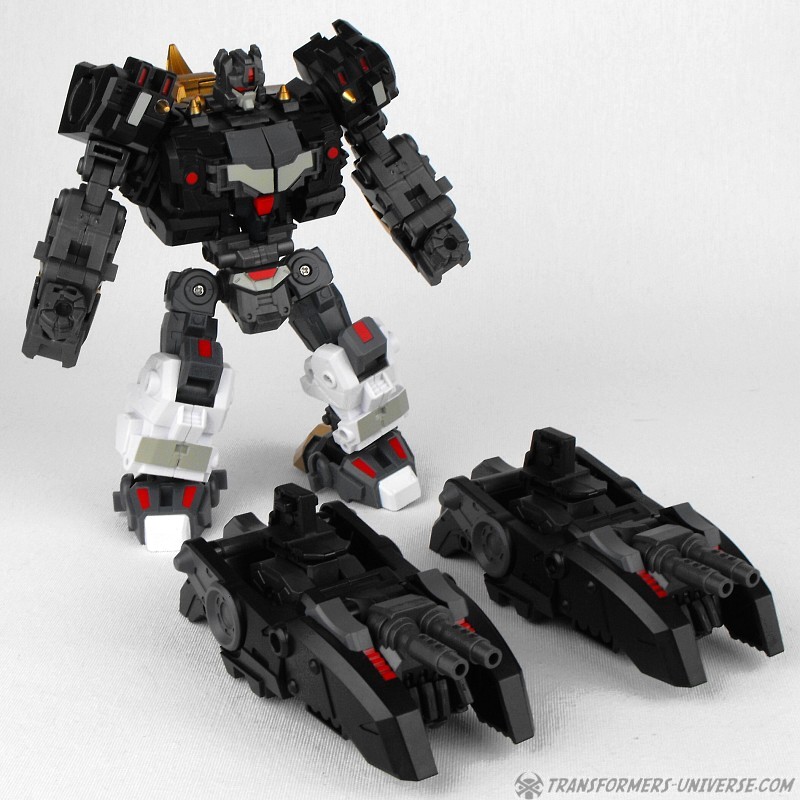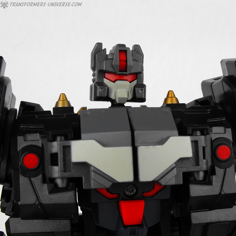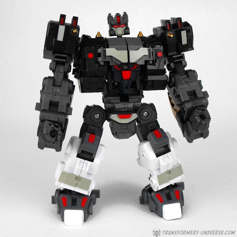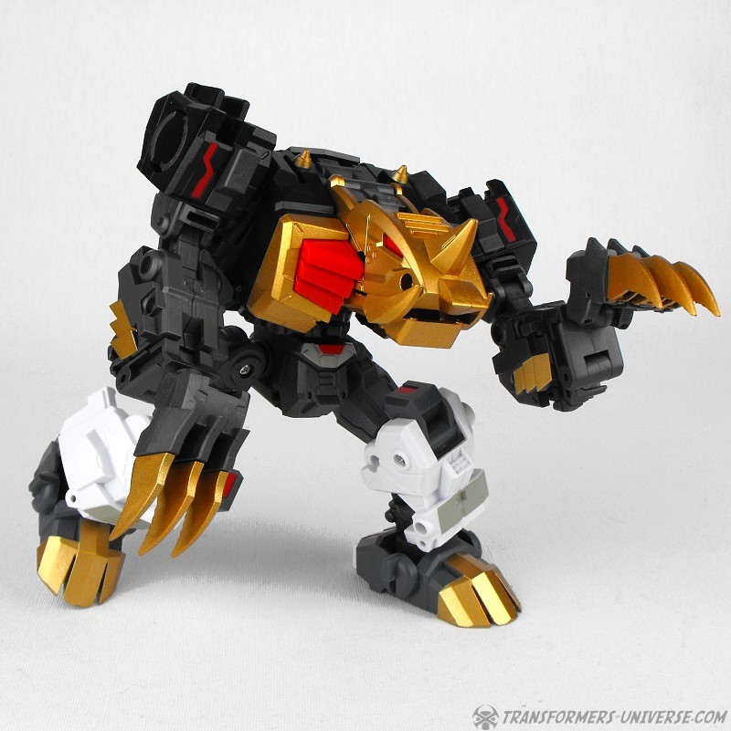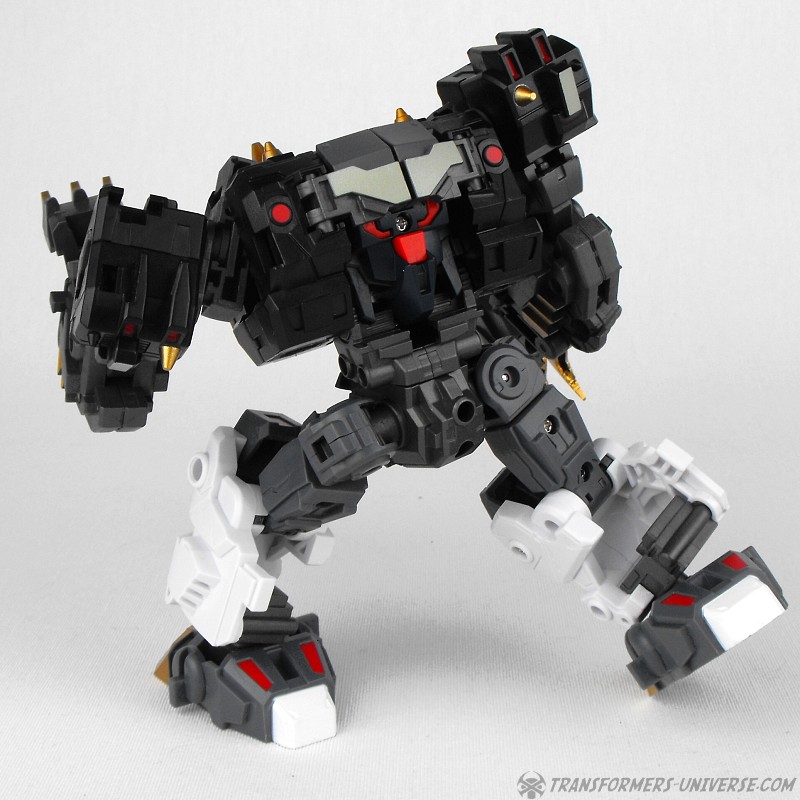 Alternate Mode: A rather minimalistic transformation turns a humanoid robot into robotic monster. Dinoichi basically just swivels his upper body around, unveiling the big monster head, and folds in his robot head. Flip out the claws, turn around the feet, and you’re done. Here, too, the resemblance to Kakuryu’s monster mode is pretty good. The monster itself... well, it’s a monster of some sort. Big head with big horn and teeth. It retains the full articulation of the robot and... yeah, that’s pretty much it. Personally I think I’ll leave Dinoichi in robot mode most of the time and not bother with this alternate mode, but it does work as intended and homages the original. So mission accomplished.
