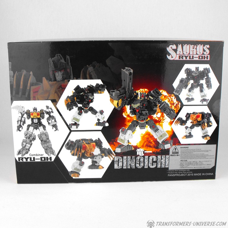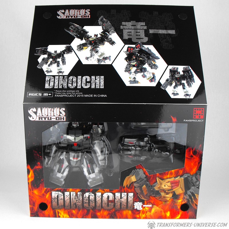 Prelude: Legal stuff first as always. Dinoichi is not a figure released by Hasbro or Takara-Tomy and thus not officially a Transformer. He is from Fansproject and meant to portray the G1 Victory Dinoforce member Kakuryu, but for legal reasons he can’t be called by that name. Instead he is named Dinoichi, which translates as Dino One. Consequently the other three Dinoforce members announced so far are named Dinoni (Dino Two), Dinosan (Dino Three), and Dinoshi (Dino Four). The final two don’t have names yet, but following that logic I assume they will be called Dinogo and Dinoroku.