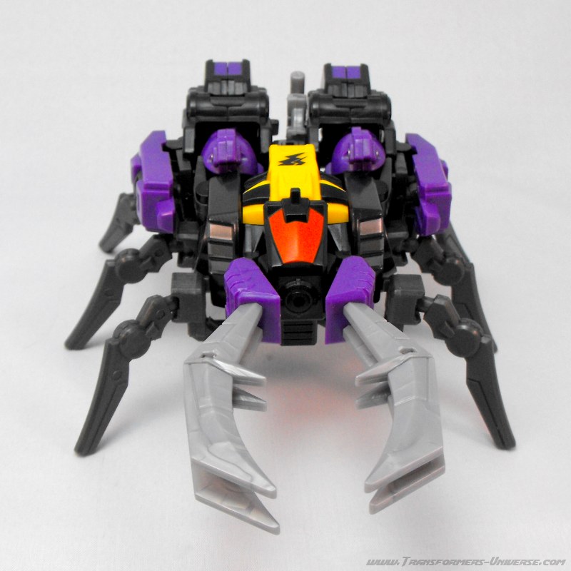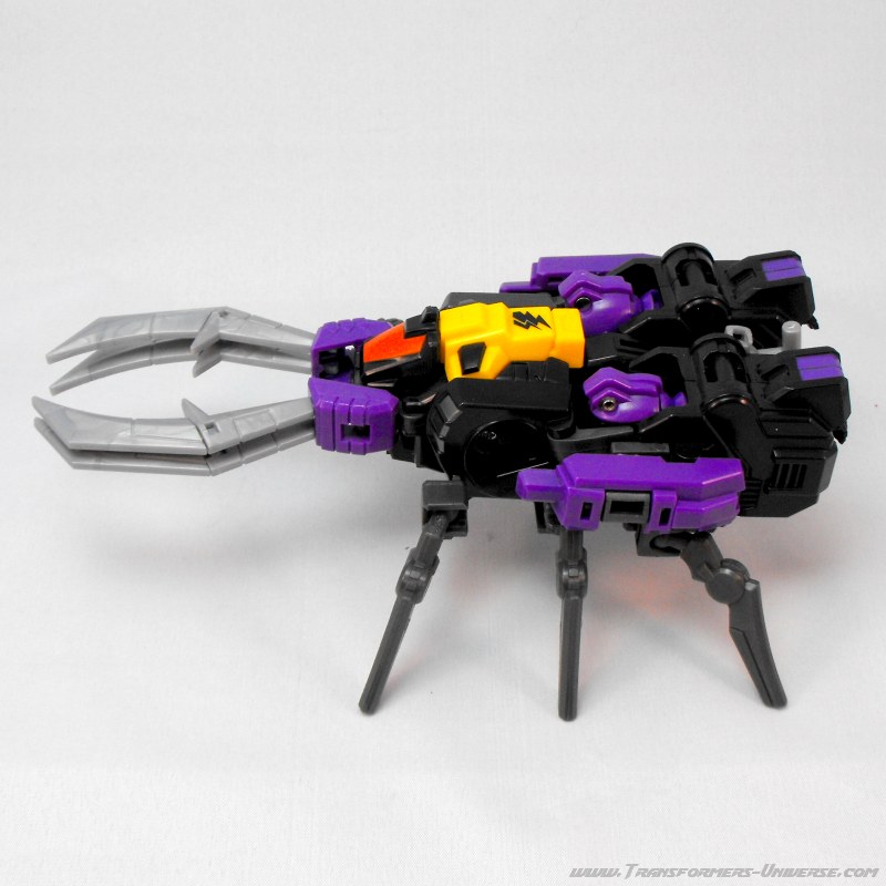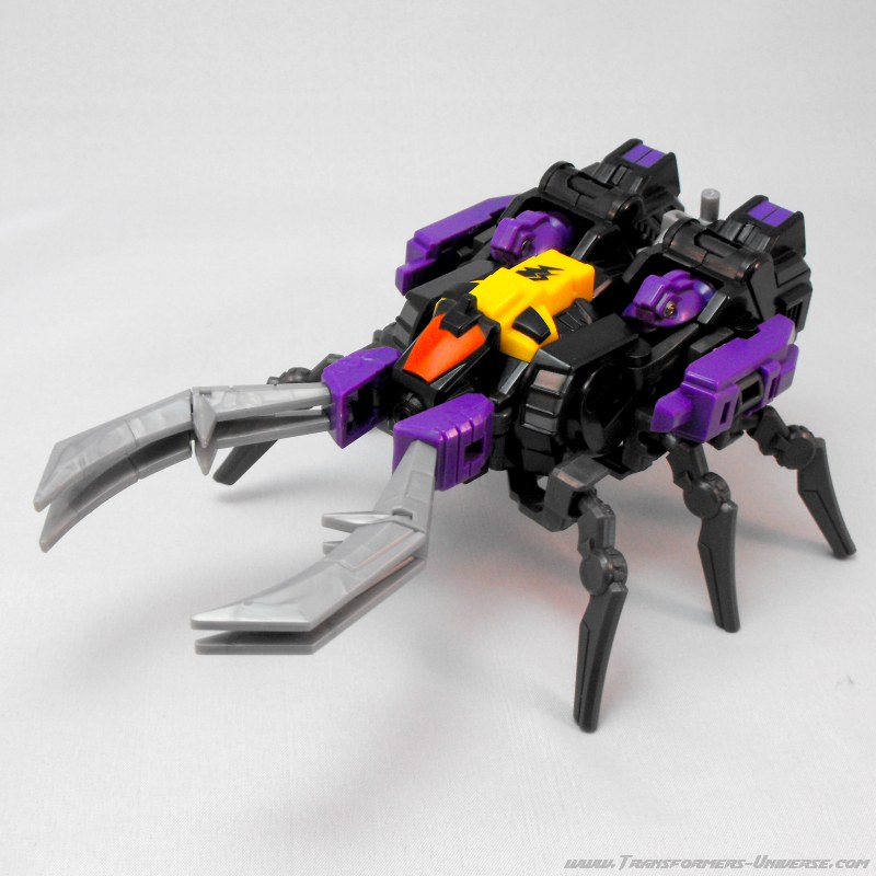 Thundershred’s pincers are posable and can grab other Transformers without problem. His six legs are on balljoints giving him some limited posability here, too. All in all this mode does what it’s supposed to, portraying a menacing-looking mechanical beetle. So thumbs up.