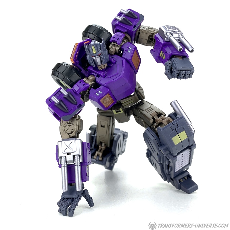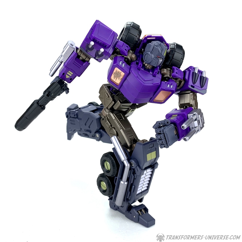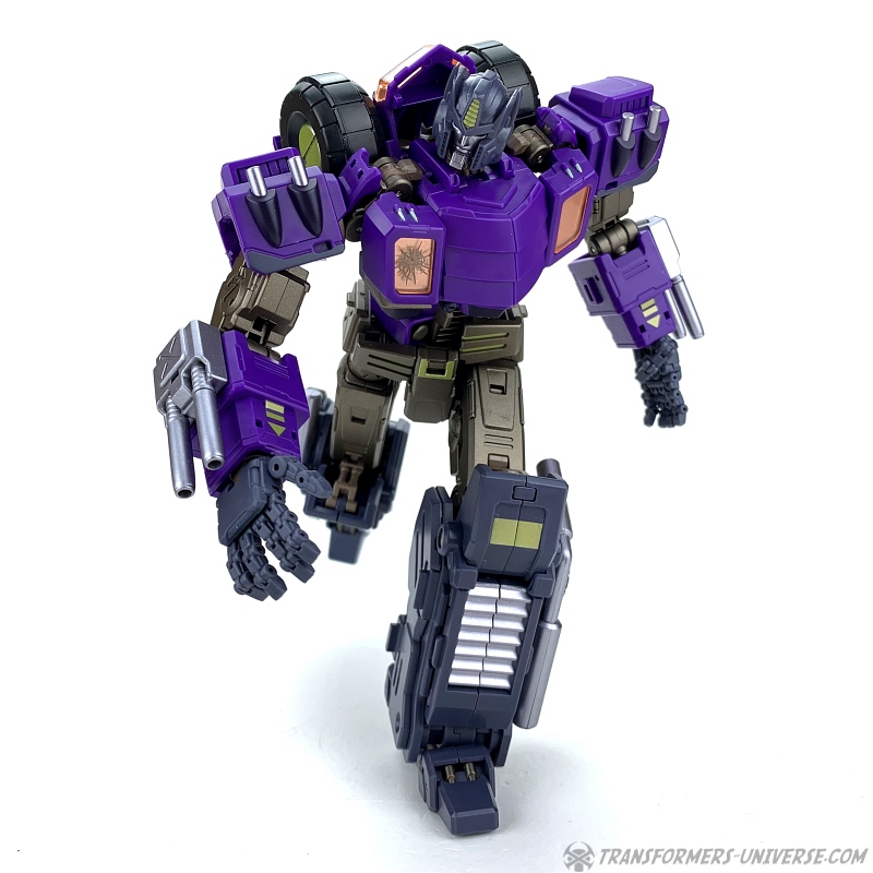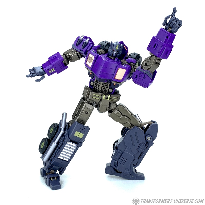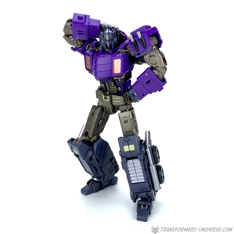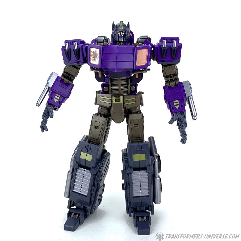 Prelude: When you’re a Third Party company creating a figure inspired by Optimus Prime, why not name it Optus Prominon? Sure, it’s a bit of bastardized Latin, but it more or less means the same thing. Also, every Optimus Prime figure, be it official or third party, needs to be repainted at least once, preferably numerous times. And while the old black repaint remains the favorite, the purple Shattered Glass (or Servered Geist, rather) version is almost as prominent by now. So let us take a look at Mastermind Creations’ version of the evil Autobot leader. Let’s say go!