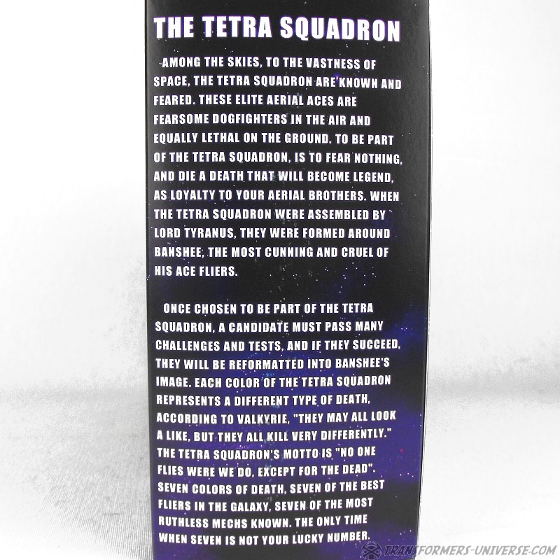 Remarks: The original G1 cartoon showed us only very few pre-Earth alternate modes (in the first two seasons anyway) and, as mentioned above, usually left the robot modes unchanged. Since then we’ve seen quite a few toys with pre-Earth / Cybertronian modes, but I think the Tetra Squadron might actually be the first to do it in G1-styling. That said, the Tetra Squadron were the swan song of third party company Impossible Toys, as they closed down shortly afterwards. The press release stated: