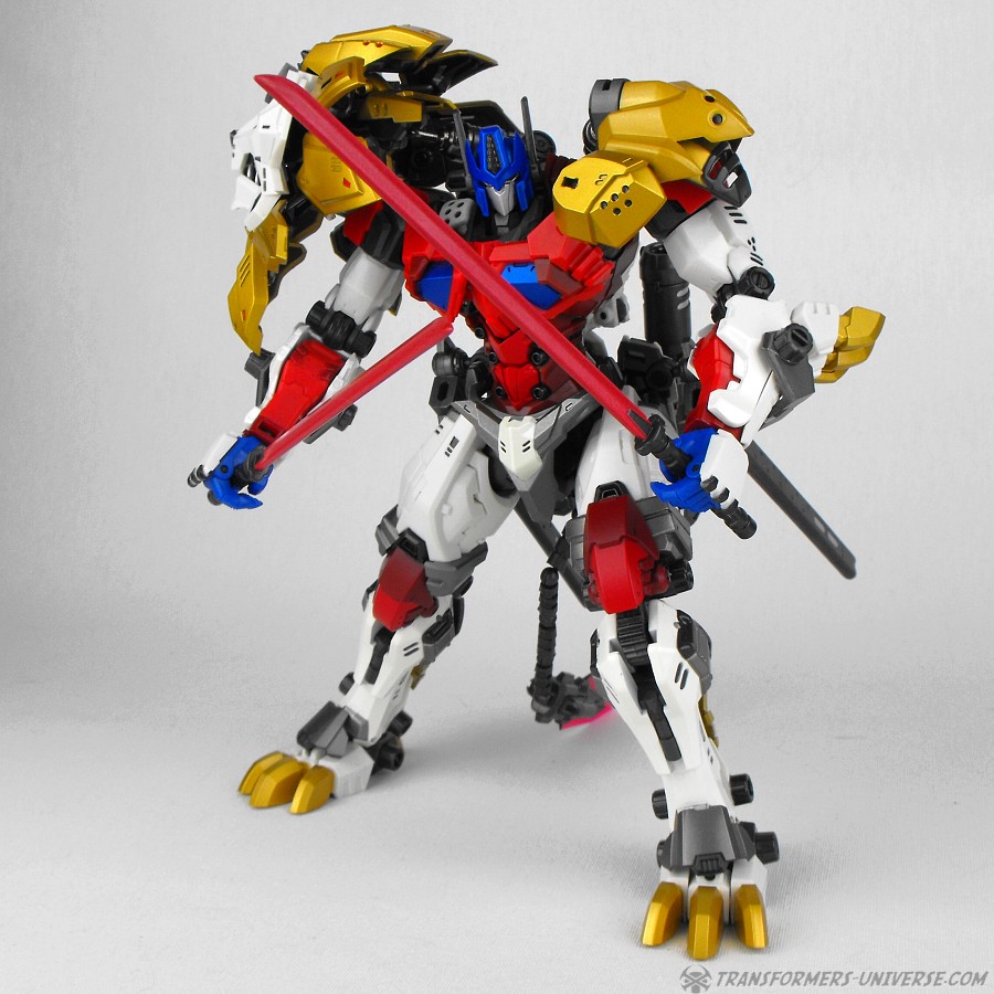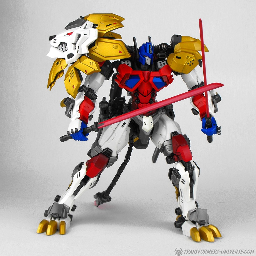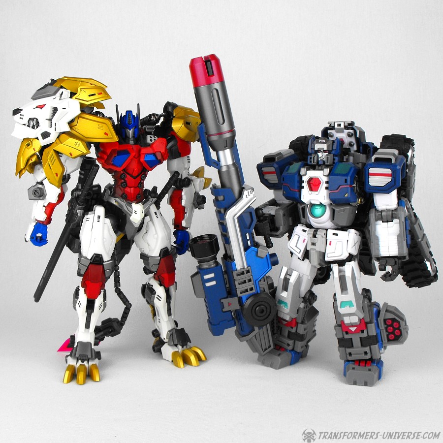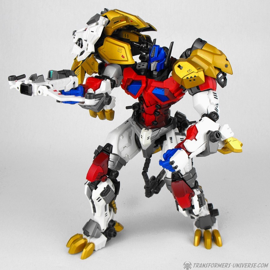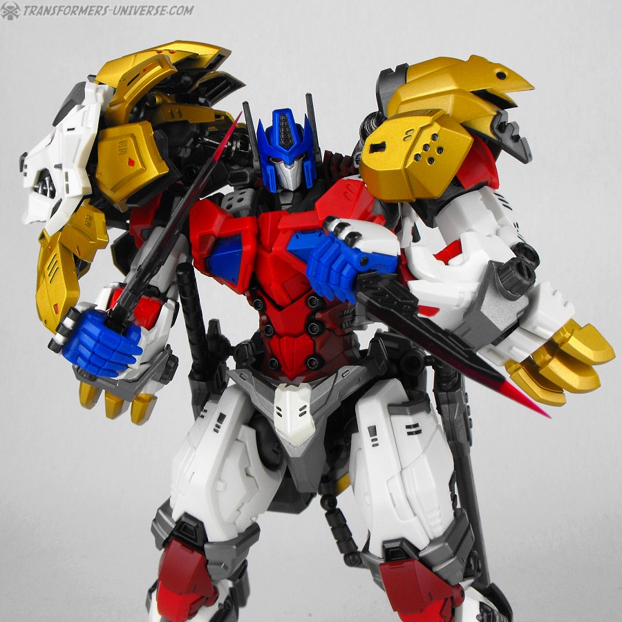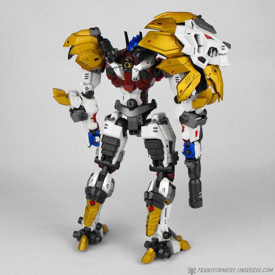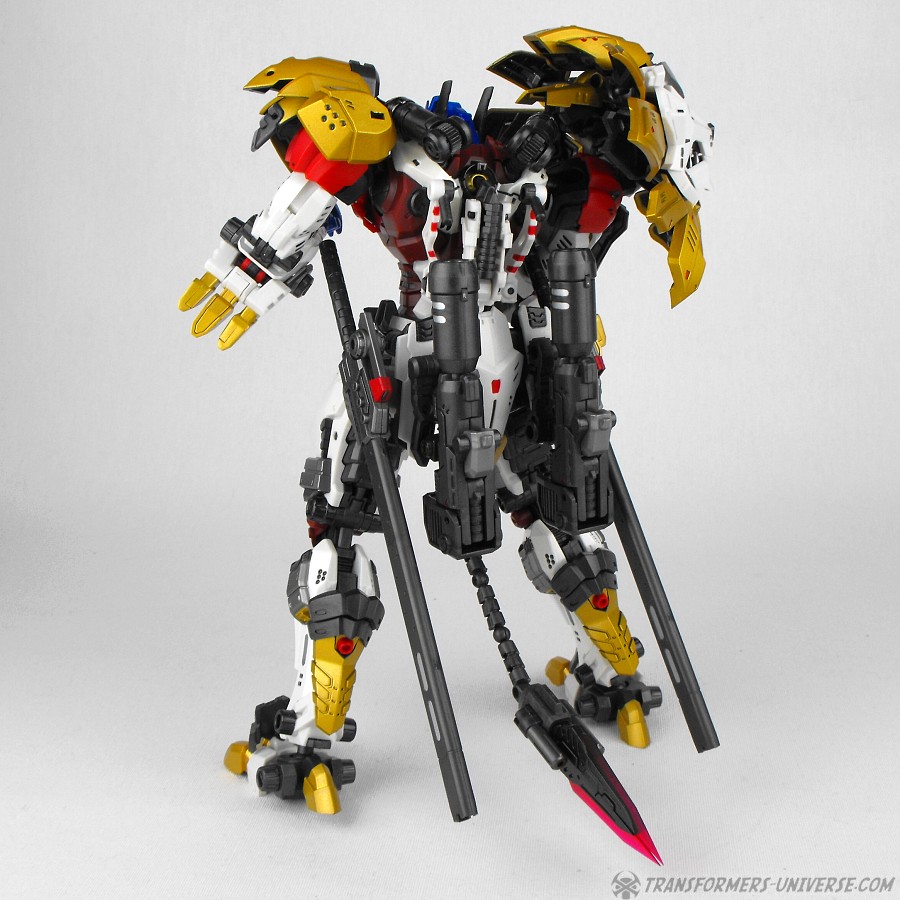 Leonidas is not just for looking at, though. He is an incredibly well-articulated robot with just about every kind of joint one could ask for, allowing all sorts of great poses. Even more so if you add the display stand Perfect Effect has included in the package, making it possible for Leonidas to remain standing in a running pose, for example, or make it look like he is jumping through the air. His two big shoulder pieces, the big lion head and the smaller mane part on the other one, can be moved out of the way for more dynamic arm movements, so there is no restrictions there. Well, maybe one: some of Leonidas’ joints, especially the shoulder joints, are very, very tight. I’m doing fine with mine, but apparently some Leonidas owners have managed to get theirs broken just by moving the arms around. A bit of a gentle touch is definitely asked for here.