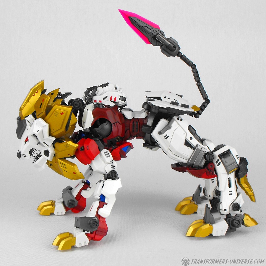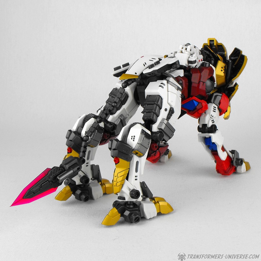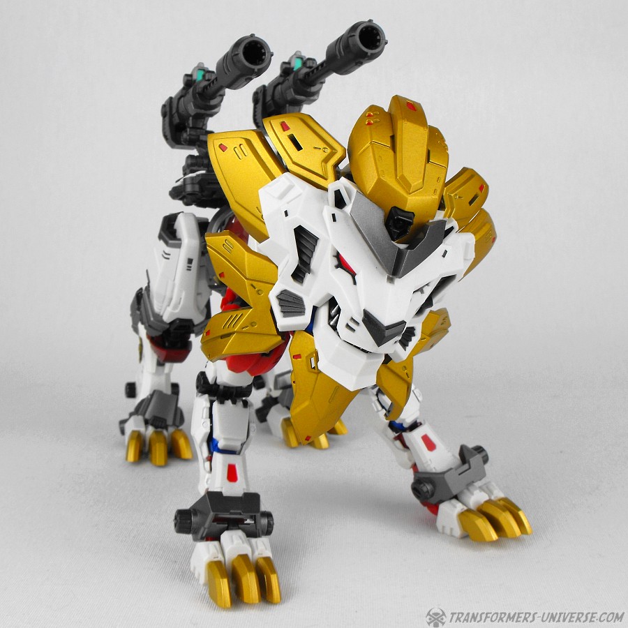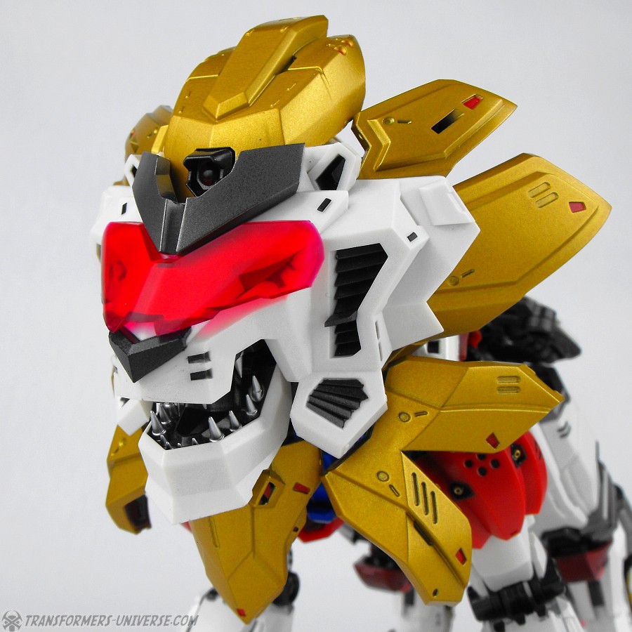 Simplistic transformation aside, this is still a pretty gorgeous lion mode. It’s clearly robotic in nature, foregoing Lio Convoy’s organic-looking beast mode, but still looks pretty dangerous and dynamic. All four legs retain their full range of motion, the body itself can bend and twist a bit, too, and while the head is more or less fixed in place, you can still make the lion look up, down, and sideways, at least a bit. The lion’s mouth can open, revealing steel teeth that are actually pretty pointy.
