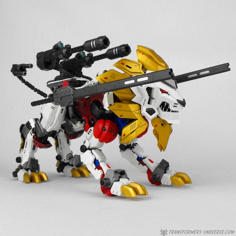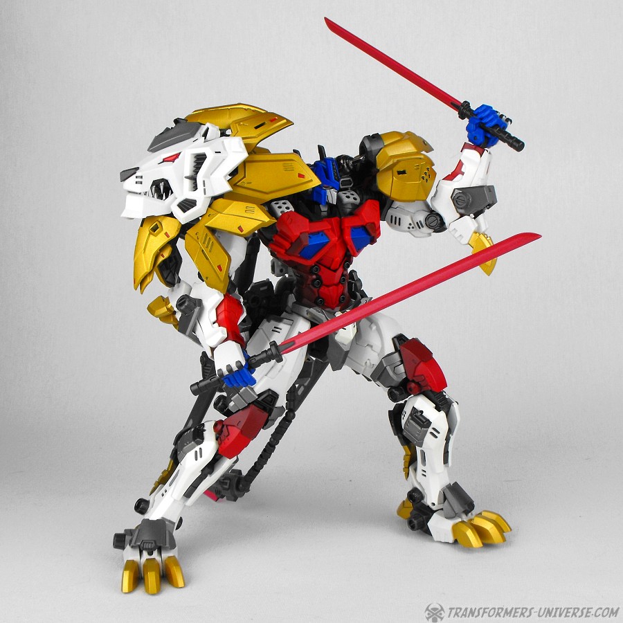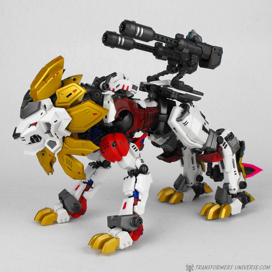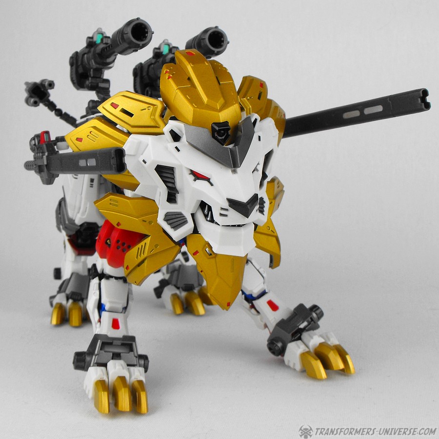 Simplistic transformation aside, this is still a pretty gorgeous lion mode. It’s clearly robotic in nature, foregoing Lio Convoy’s organic-looking beast mode, but still looks pretty dangerous and dynamic. All four legs retain their full range of motion, the body itself can bend and twist a bit, too, and while the head is more or less fixed in place, you can still make the lion look up, down, and sideways, at least a bit. The lion’s mouth can open, revealing steel teeth that are actually pretty pointy.