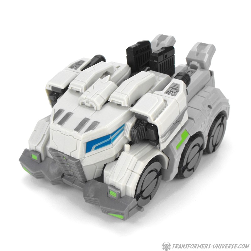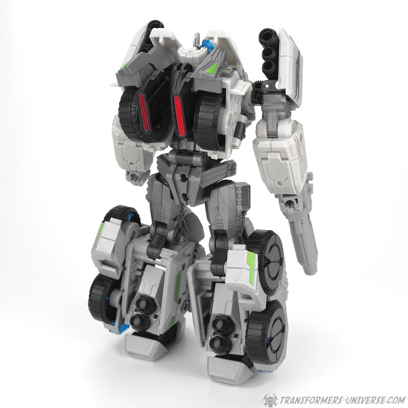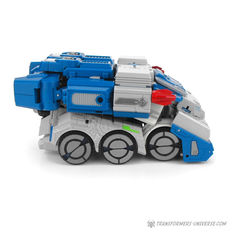Alternate Mode: Apollo transforms into the same Science-Fiction style truck as Fall of Cybertron Optimus Prime, naturally. The transformation is a good deal more complicated than that of the Deluxe-class figure, unsurprisingly, but still not all that hard. Though I have to say, again, that the instruction sheet could be improved a lot. The tiny grey-scale images don’t really help much when something small and fiddly needs to be transformed. Anyway, we end up with a mostly white Science Fiction truck.