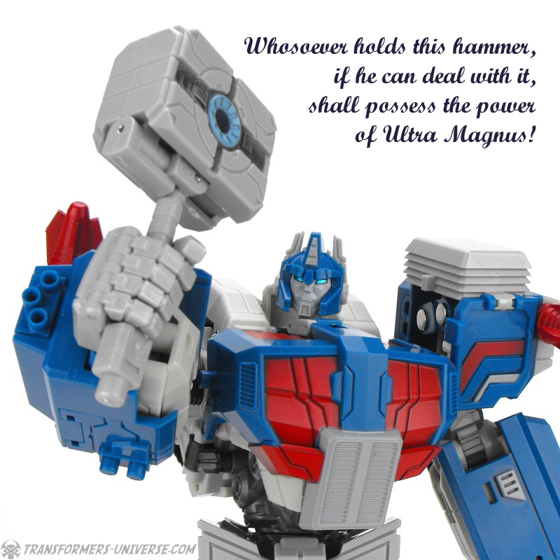 Remarks: Ultra Magnus was not a playable character in the campaigns of the Fall of Cybertron video game. His armored super robot form was available in the Havoc DLC pack for the multiplayer mode, though, while his inner robot is, of course, a white repaint of the Fall of Cybertron Optimus Prime design. And yes, technically he is supposed to be the same guy as Prime Ultra Magnus, but the continuity chaos that is the Aligned Continuity is another story.