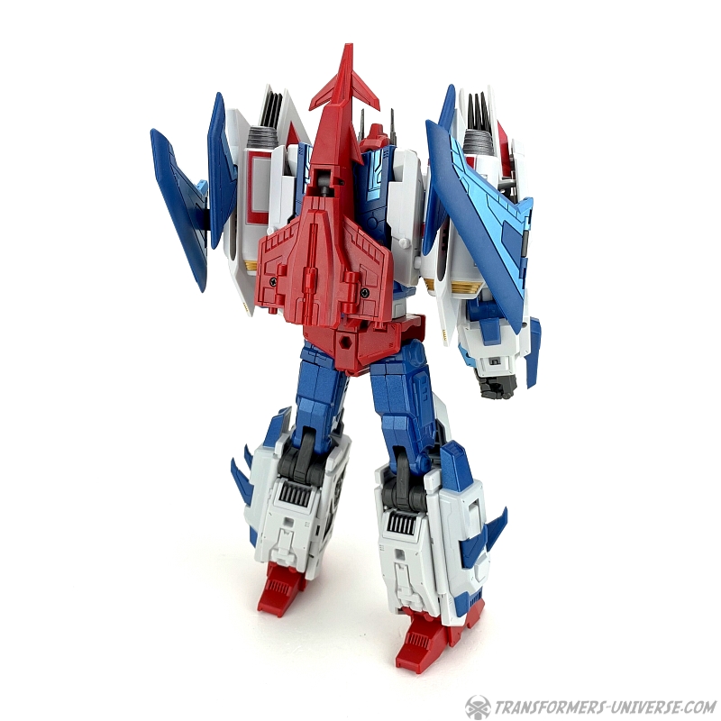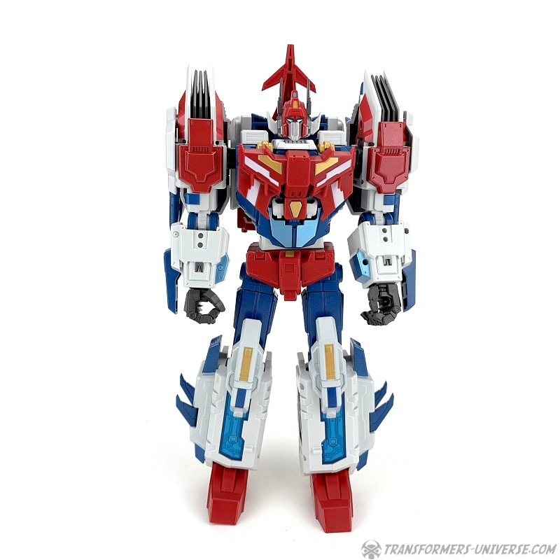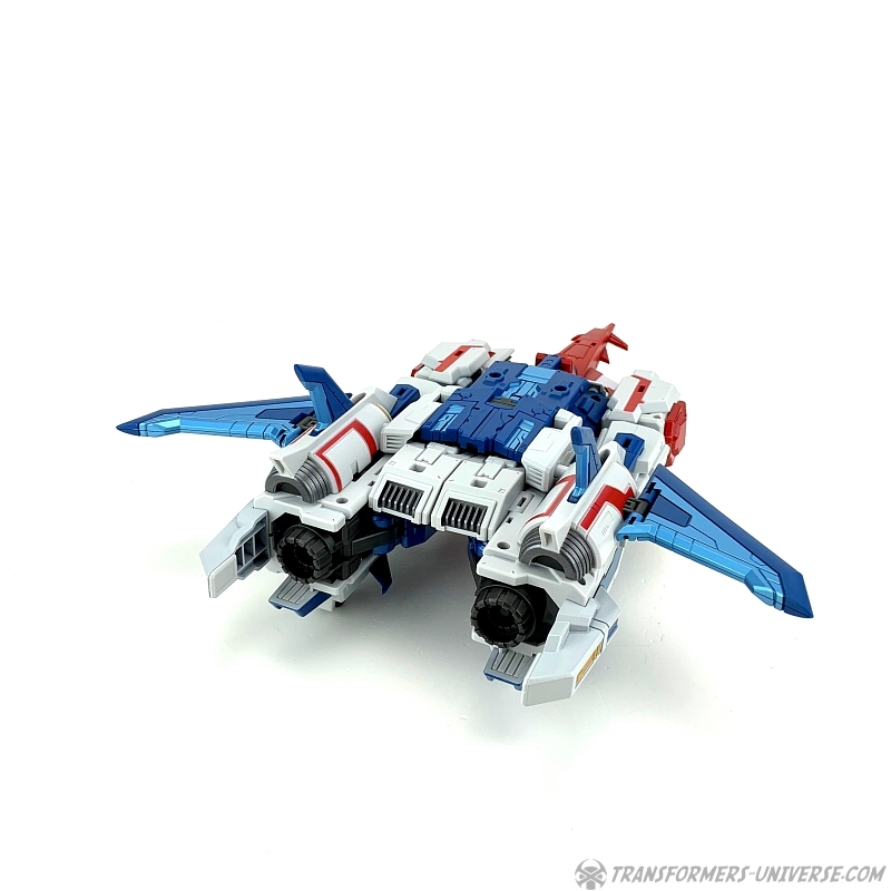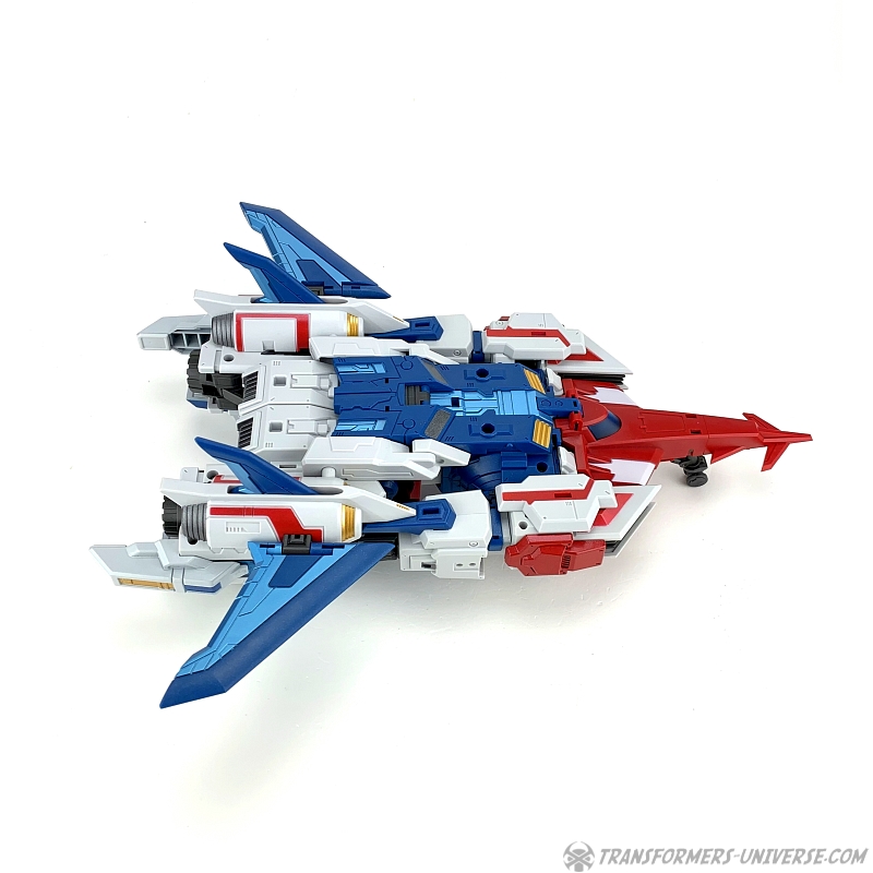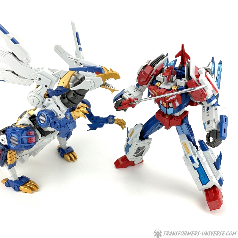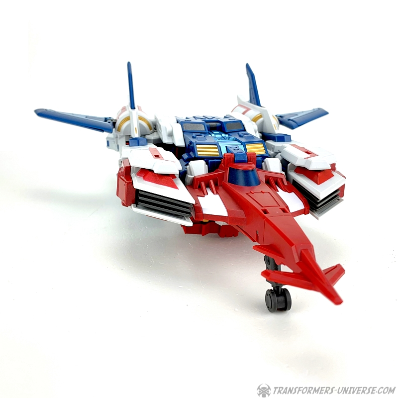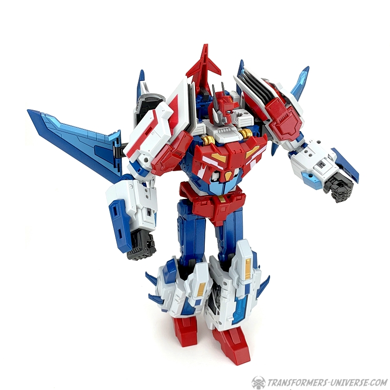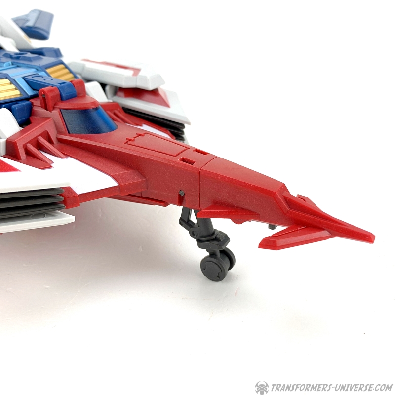 Kadmos transforms into a huge science fiction space jet and can do it without having to remove the smaller robot, too. The resulting jet looks very cool, no complaints, and holds together pretty well, too. The transformation is more or less identical to that of the original Star Saber and easier than it looks in the instructions, too. The jet has a fully functional landing gear and the only visible robot bits are the hands, which are only recognizable from the underside. So bottom line: a great larger robot that transforms into a great space jet. This is definitely the reason to buy this figure.