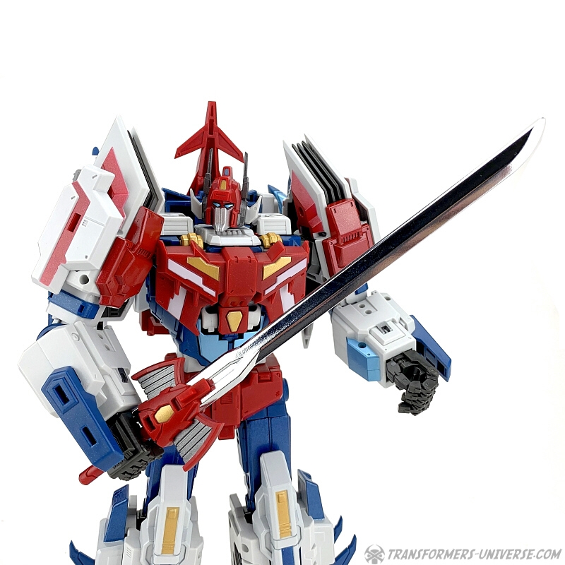 Small Kadmos can also transform into a sort-of jet mode, but where the robot mode looks very close to the original Saber, the jet mode really doesn’t. It barely looks like a jet, to be honest. It’s basically just the robot folded in half with tiny wings and a cockpit folding out, little more than that. So bottom line for Kadmos’ smaller robot mode: not bad, nice homage, but really not the reason to buy this figure. I doubt that I will ever take him out of the larger robot again after finishing up this review. Let’s get to the bigger guy now.