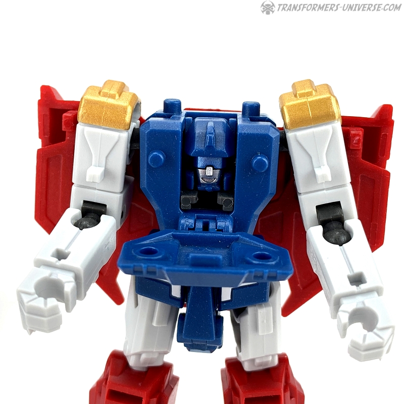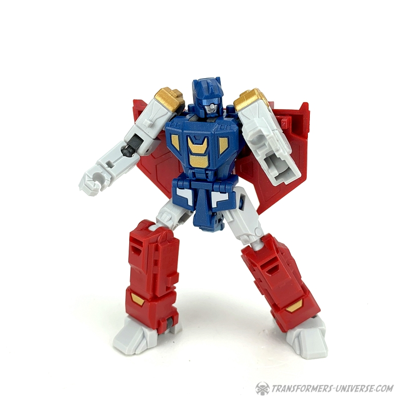 There is even a minor homage included to the original Saber’s Brainmaster gimmick as, when transforming into robot mode, the robot’s head slides up from inside his chest, very similar to how the Brainmasters worked. Nicely done. Sadly that is the most positive thing I can say about the smaller robot. Nothing wrong with his looks or articulation, but there isn’t really much else you can do here. No weapons for this little guy, either.