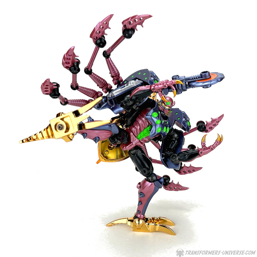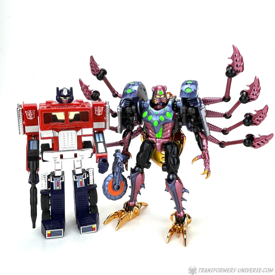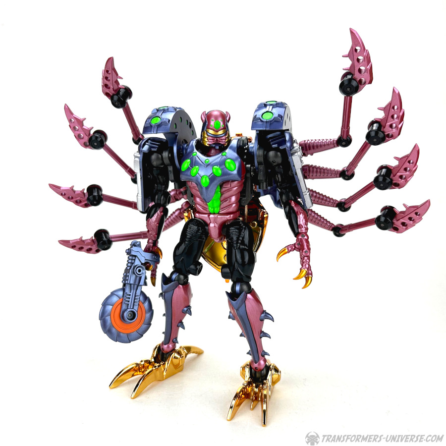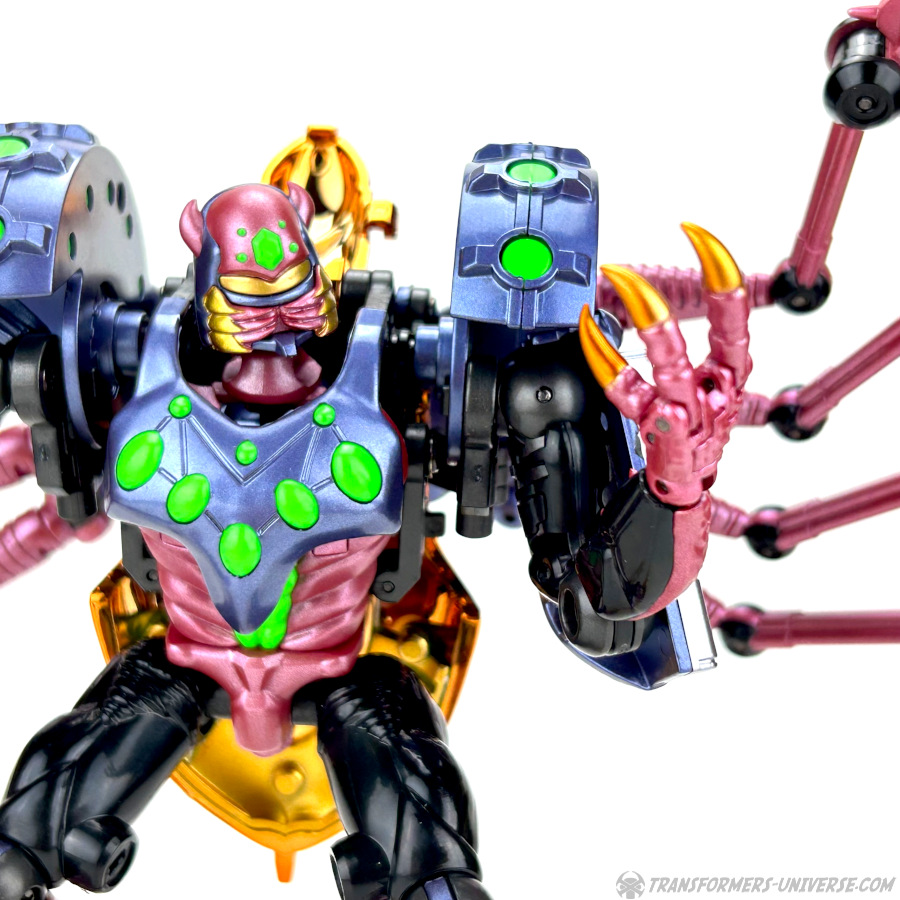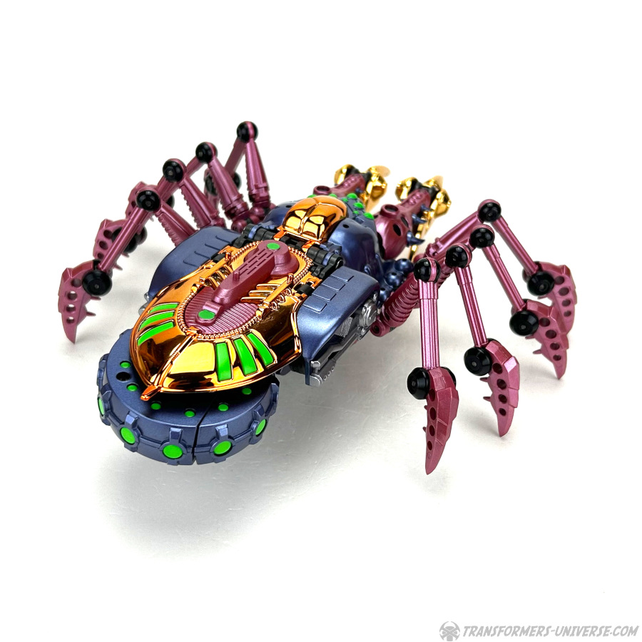 Remarks: Tarantulas was among the original crew of the Darksyde, the ship that Predacon Megatron commandeered to travel through time back to ancient Earth. He was far from a loyal follower, though, but rather a member of the Predacon Secret Police and his job was... well, it wasn’t one hundred percent clear, but Tarantulas attempted to alter history by killing both the original Megatron and Optimus Prime aboard the Ark in order to alter history, so at the very least he was quite ambitious. In the end his own ambition doomed him, as his attempt to harness the power of the alien Vok destroyed him.