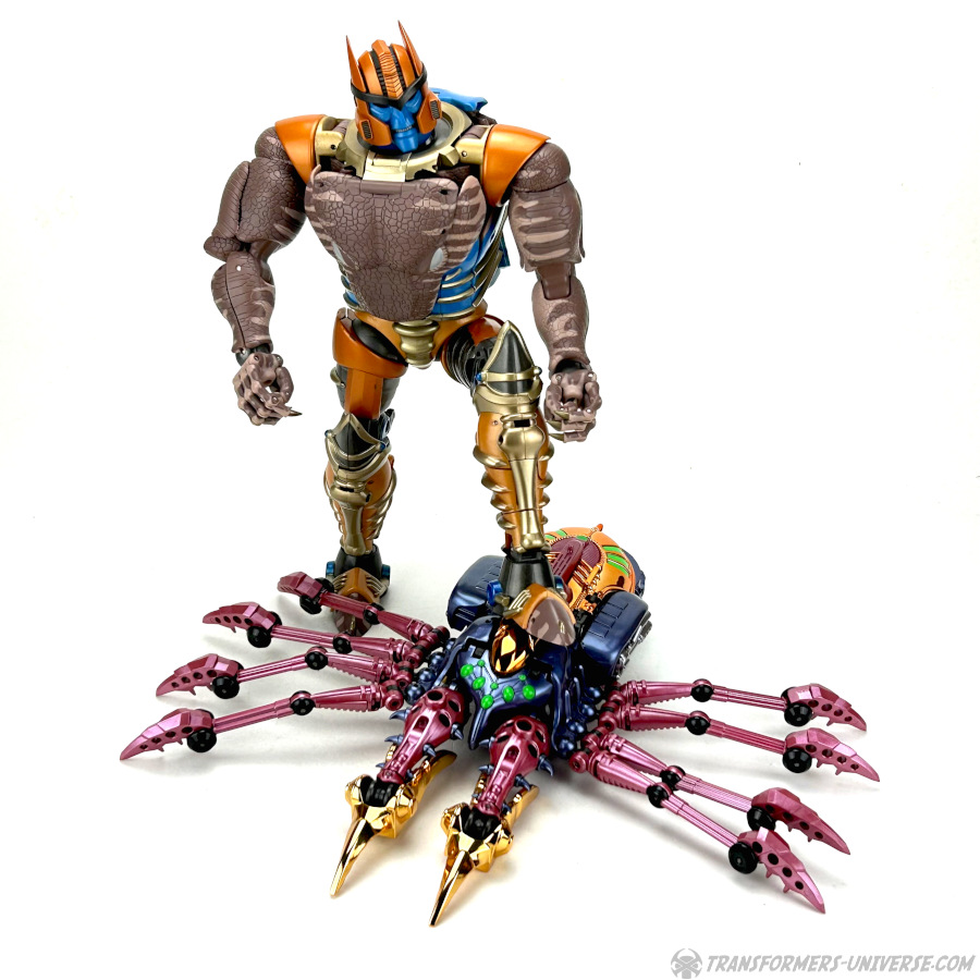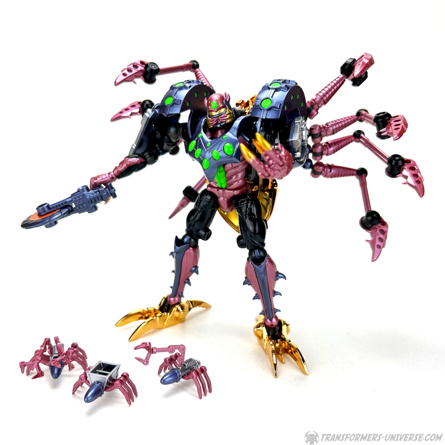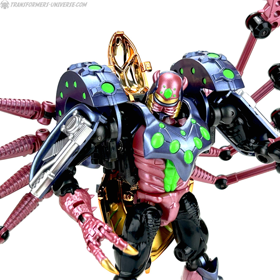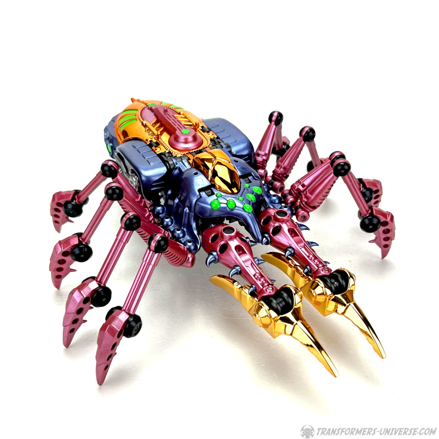 After a somewhat lackluster showing with Blade Leopard Shadow, TransArt is back at full speed with Motor Spider, a brilliant Masterpiece-scaled version of Transmetal Tarantulas. He isn’t quite perfect, the fiddly torso assembly prevents me from giving him full marks, but otherwise he is quite glorious. So a clear and definite recommendation to all Beast Wars fans.