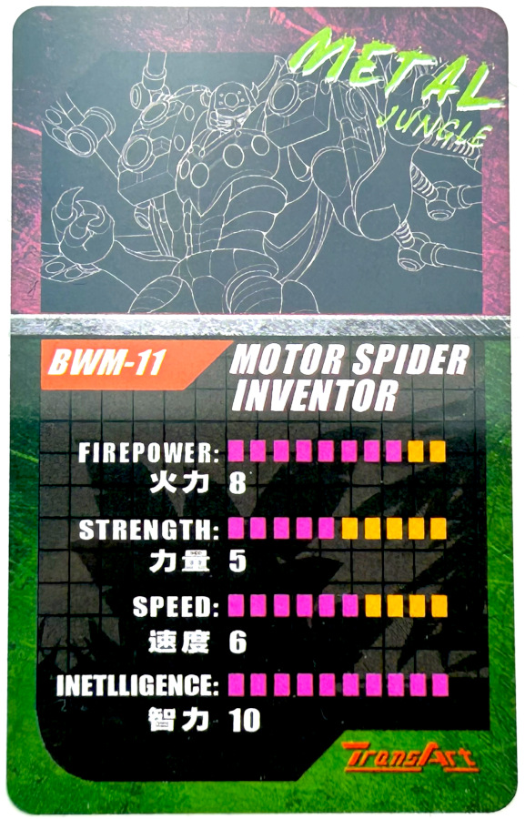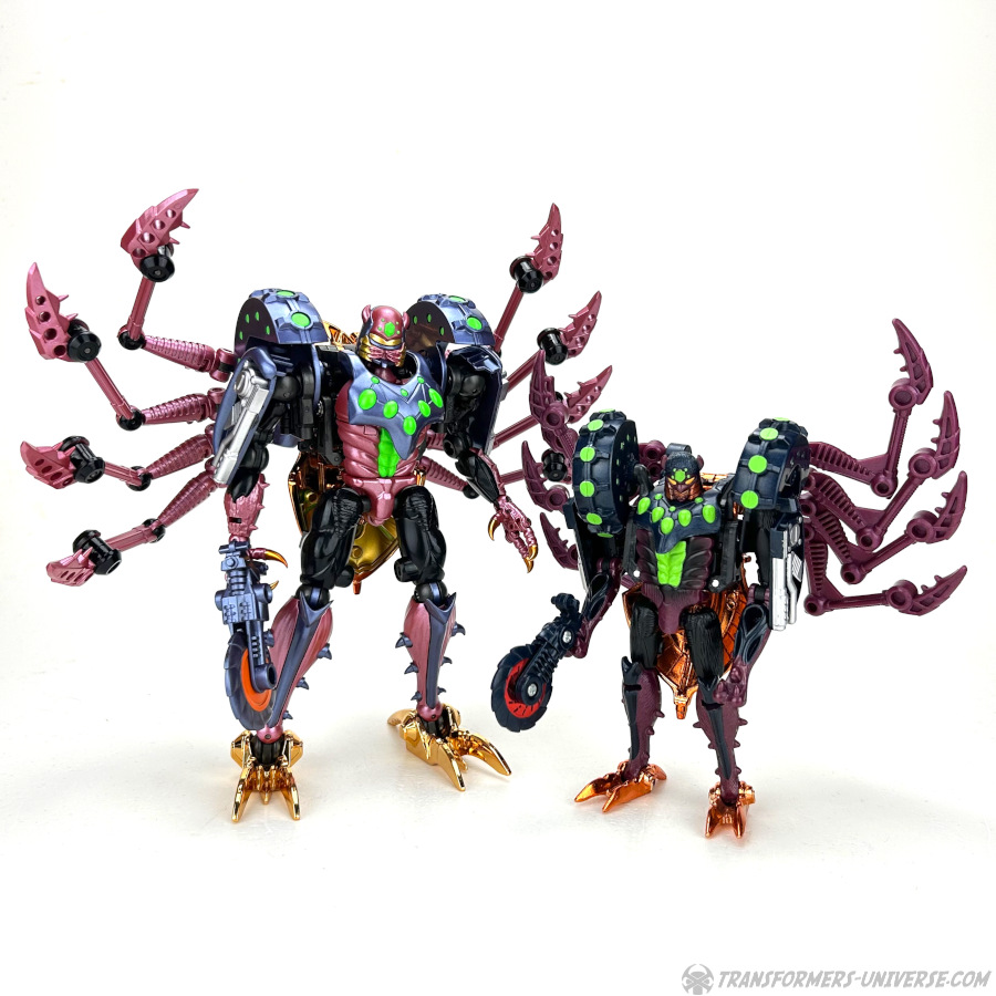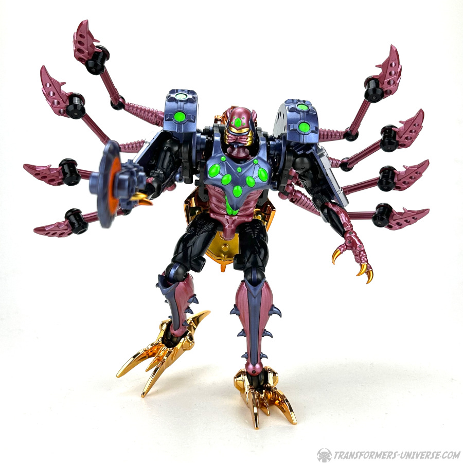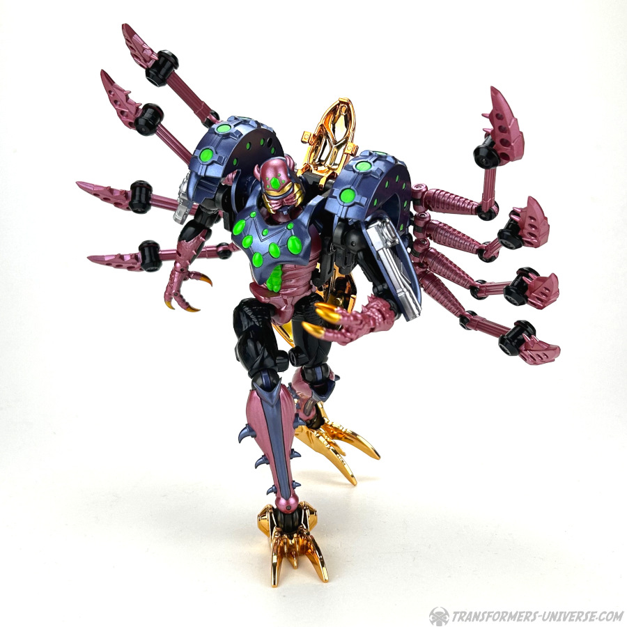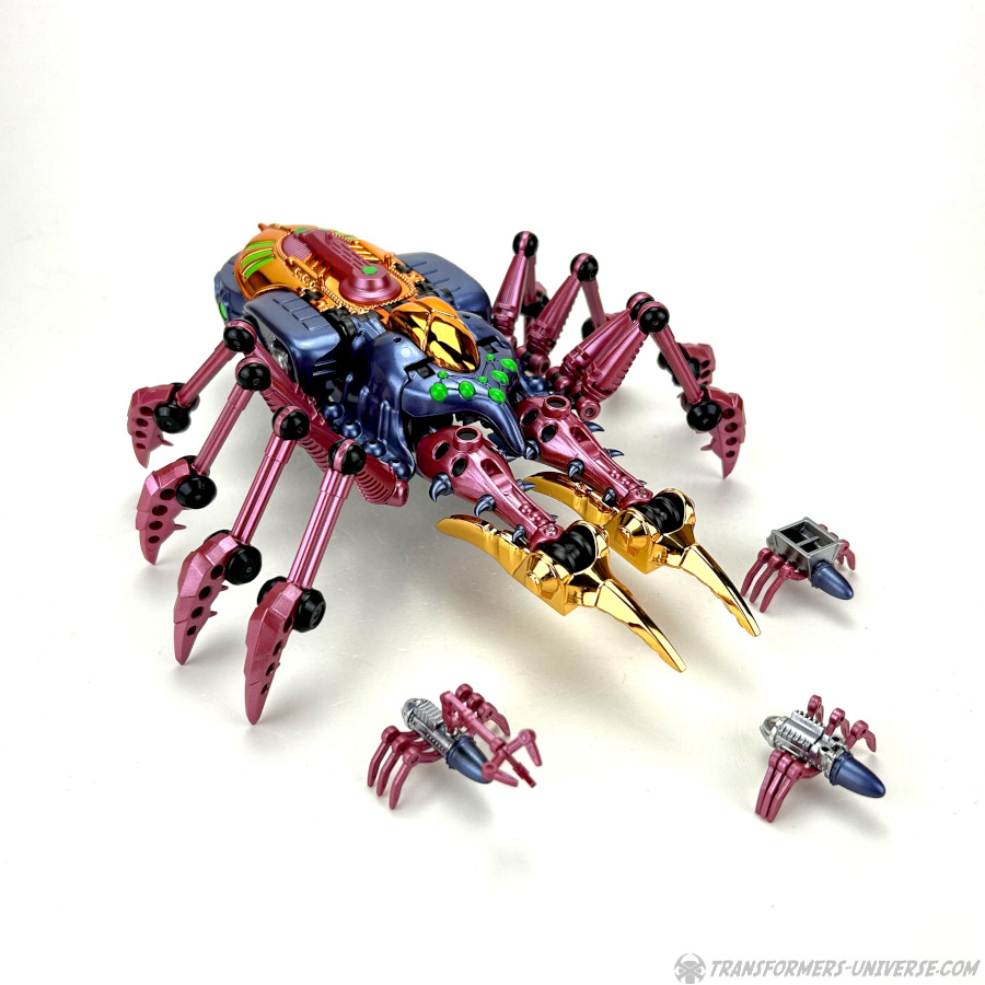After a somewhat lackluster showing with Blade Leopard Shadow, TransArt is back at full speed with Motor Spider, a brilliant Masterpiece-scaled version of Transmetal Tarantulas. He isn’t quite perfect, the fiddly torso assembly prevents me from giving him full marks, but otherwise he is quite glorious. So a clear and definite recommendation to all Beast Wars fans.