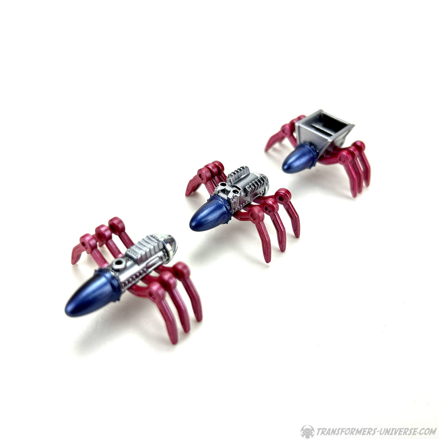 Accessories: Motor Spider comes with three little spider drones, the likes of which he also used in the TV series. Technically they aren’t spiders, of course, given that they are six-legged, but that let’s leave that aside for now. Basically they are little missiles on legs, one of them with a loading area on top. The other two have little plugs where you can insert one or two little robotic arms. The spider drones are cute and capture the look of those seen on TV, but I think they will soon wander back into the box.