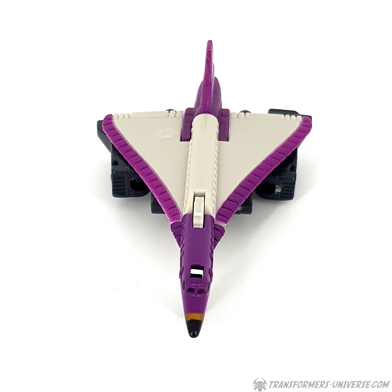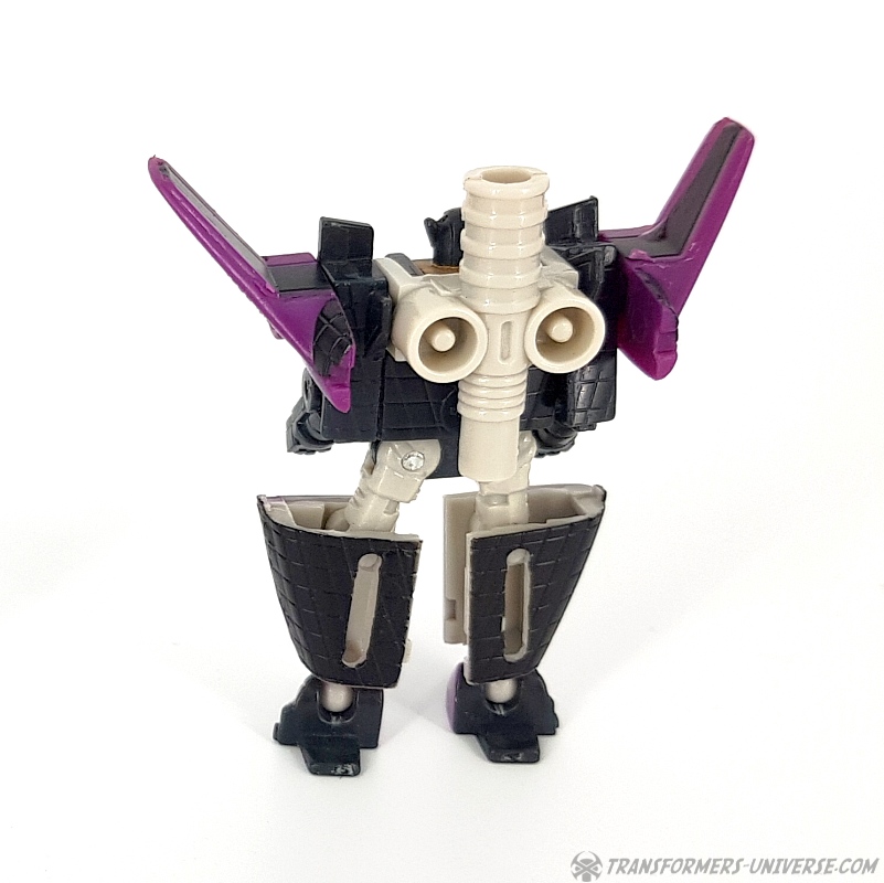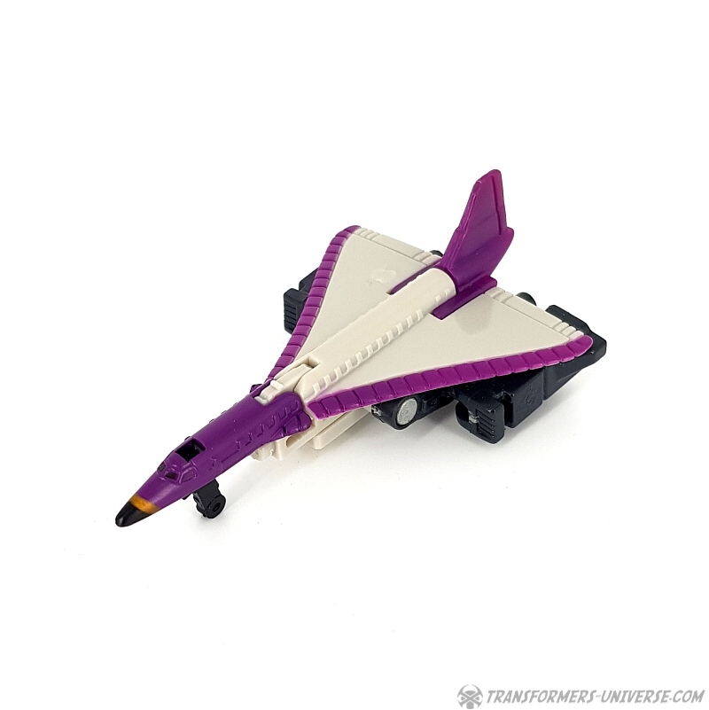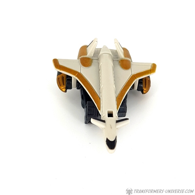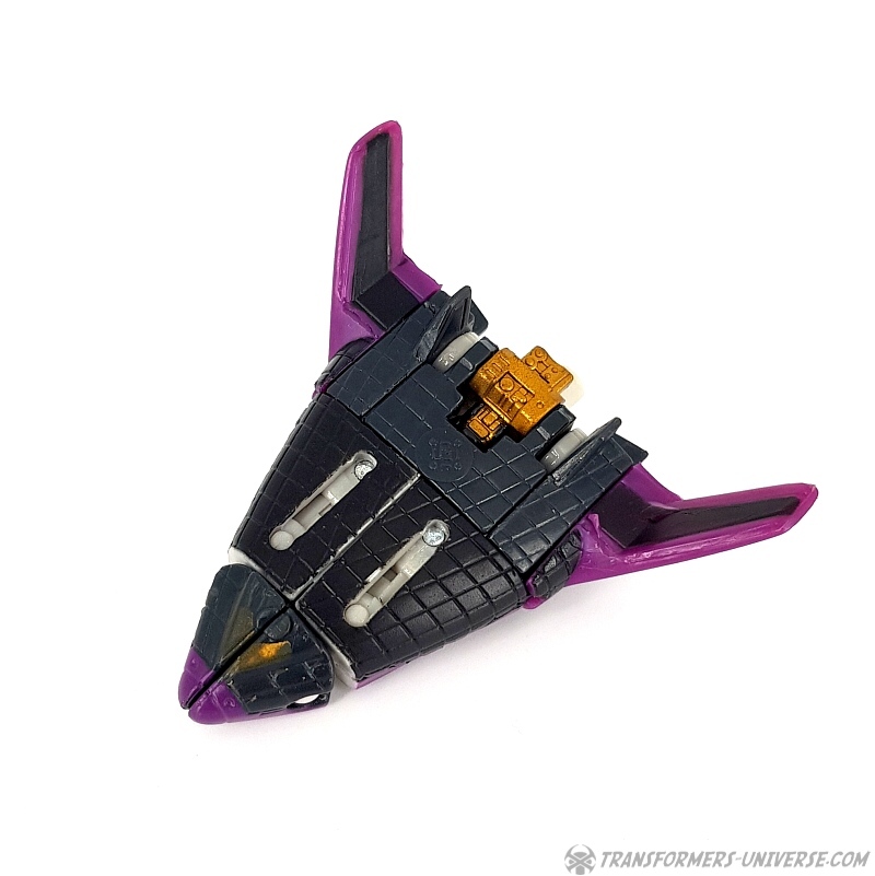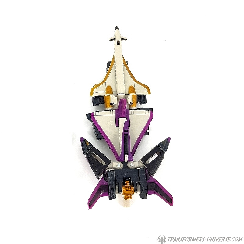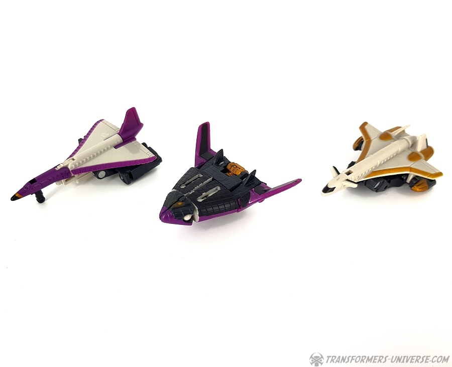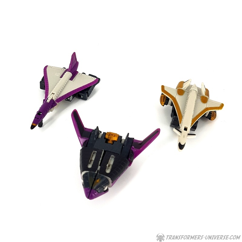 Remarks: The Air Assault Teams, consisting of Jetstorm, Runway and Sonar, are repaints of the Armada Air Defense Team, which I have previously reviewed. There is an in-story reason for these repaints, actually, as they are the "evil" versions of the Air Defense Team, corrupted by prolonged use of their combined Star Saber form by evil Decepticons. Apart from the darker colors they are identical to their "good" counterparts. The are many more version of this team out there, most of them from Takara, but these guys at least had an (indirect) appearance in canon.