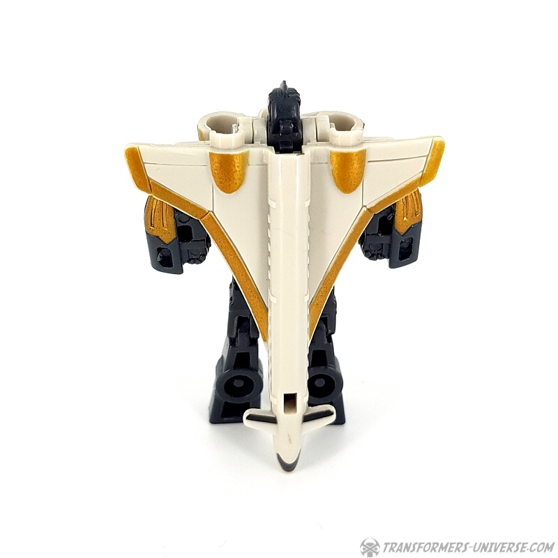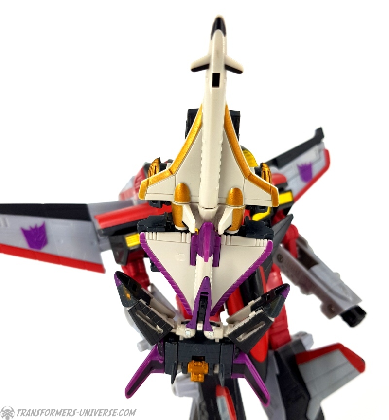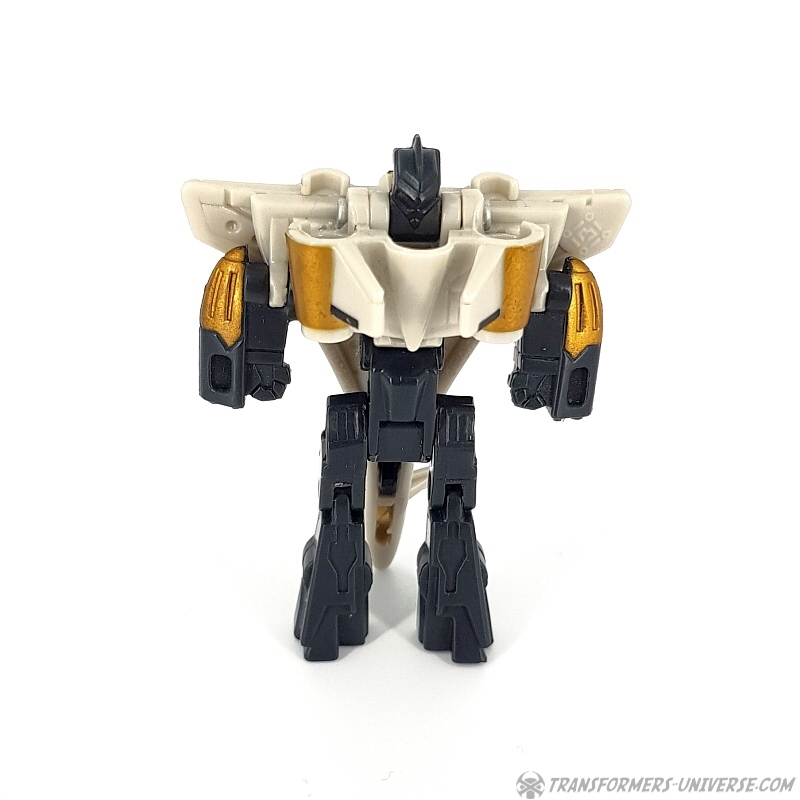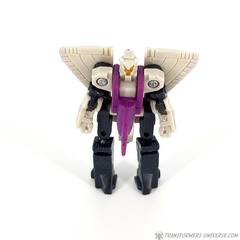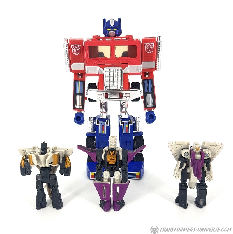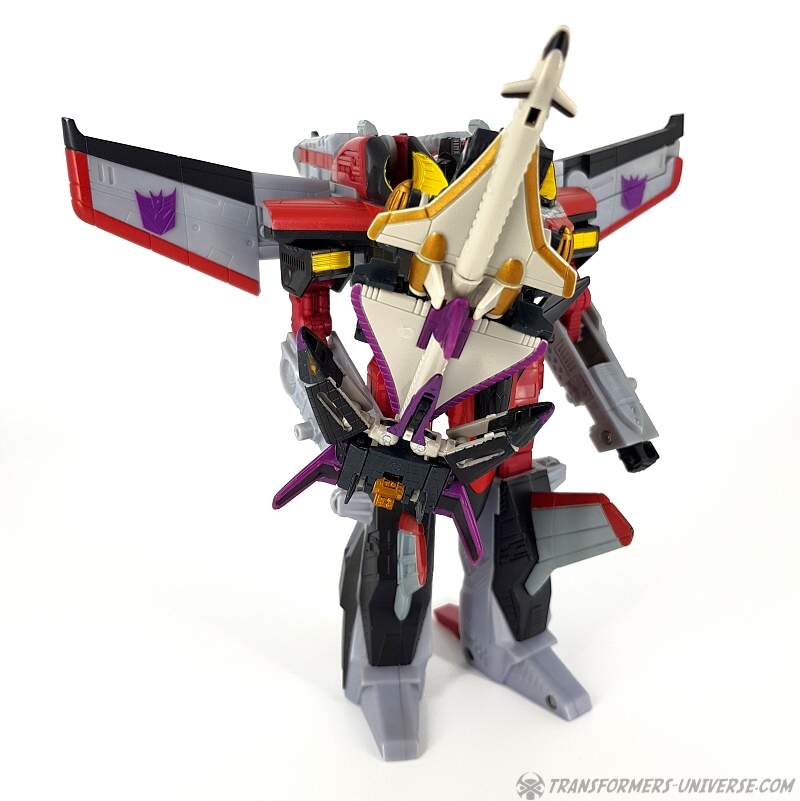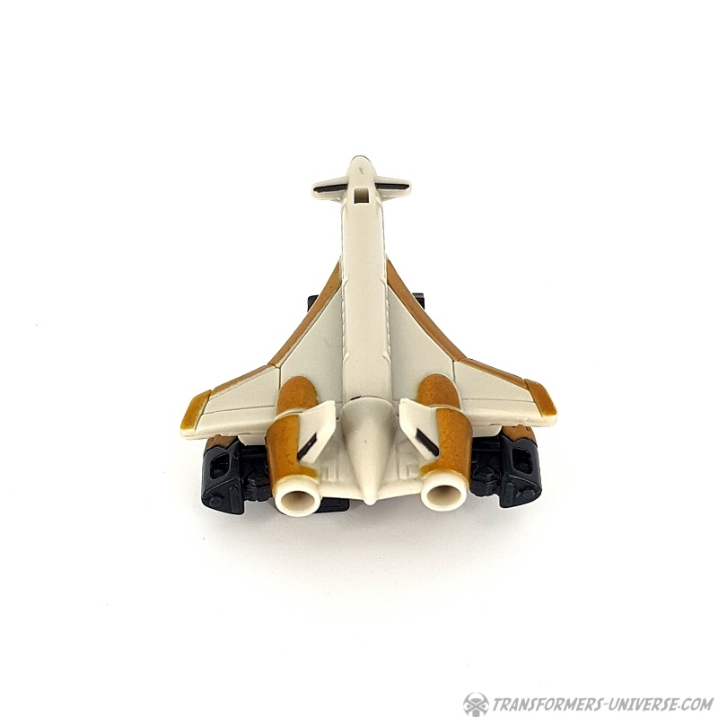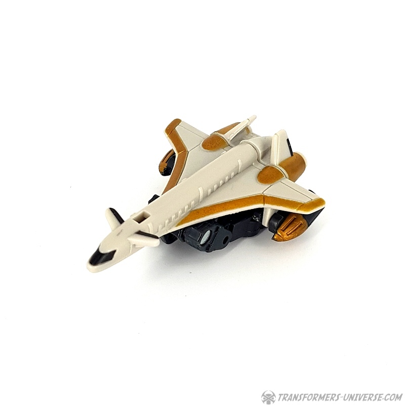 Remarks: The Air Assault Teams, consisting of Jetstorm, Runway and Sonar, are repaints of the Armada Air Defense Team, which I have previously reviewed. There is an in-story reason for these repaints, actually, as they are the "evil" versions of the Air Defense Team, corrupted by prolonged use of their combined Star Saber form by evil Decepticons. Apart from the darker colors they are identical to their "good" counterparts. The are many more version of this team out there, most of them from Takara, but these guys at least had an (indirect) appearance in canon.