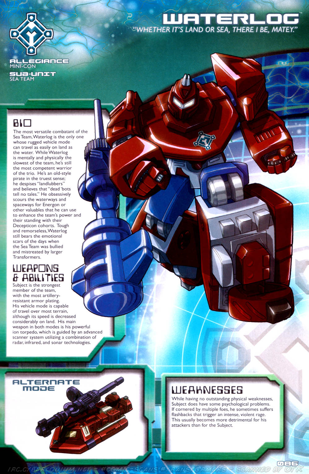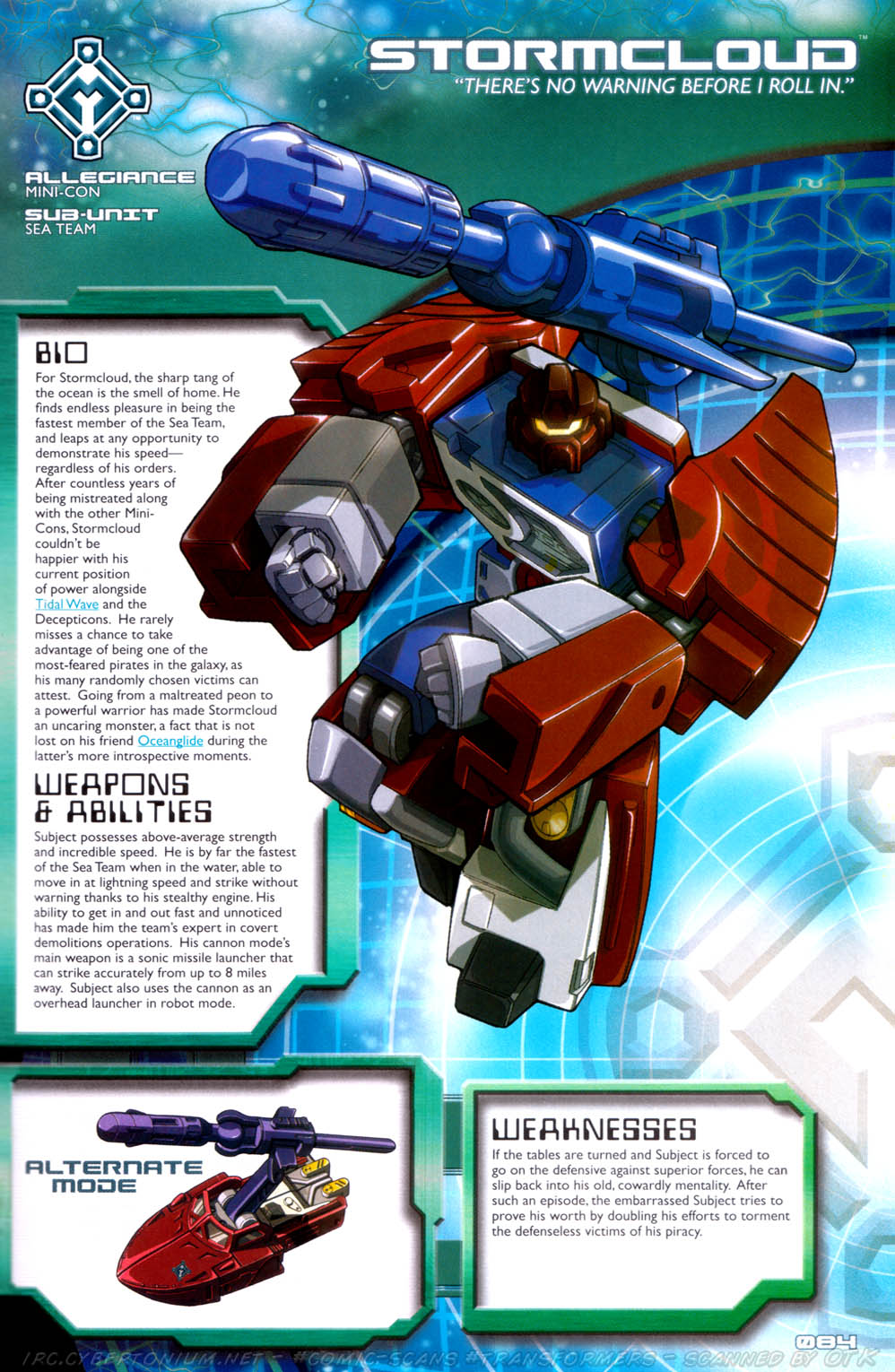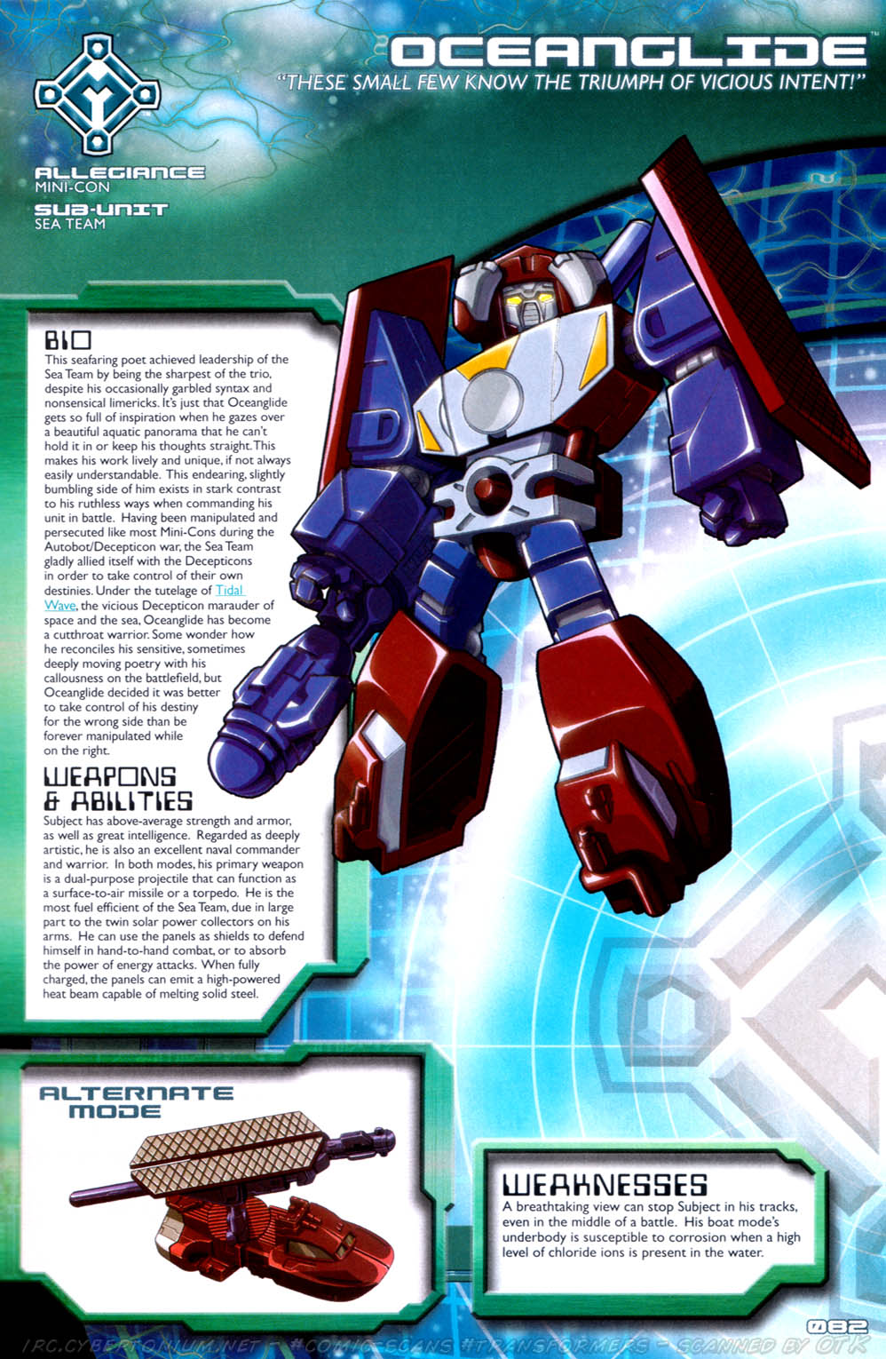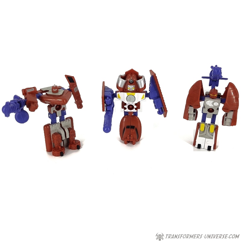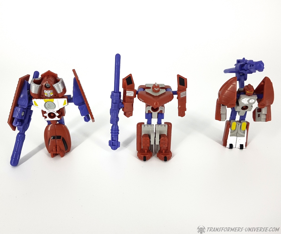 Remarks: Armada was all about the Mini-Cons, both in the cartoon and in the toy line. While most bigger robots had a partner Mini-Con, we also got lots of Mini-Con Teams as three-packs, the tiny bots usually united by a common theme. The Sea Team, unsurprisingly, consists of three Mini-Cons with naval alternate modes. All three of them also had pressure-launched missiles. Like pretty much every single Mini-Con in Armada (or Micron Legend), these three also got lots and lots of repaints in the next few years.