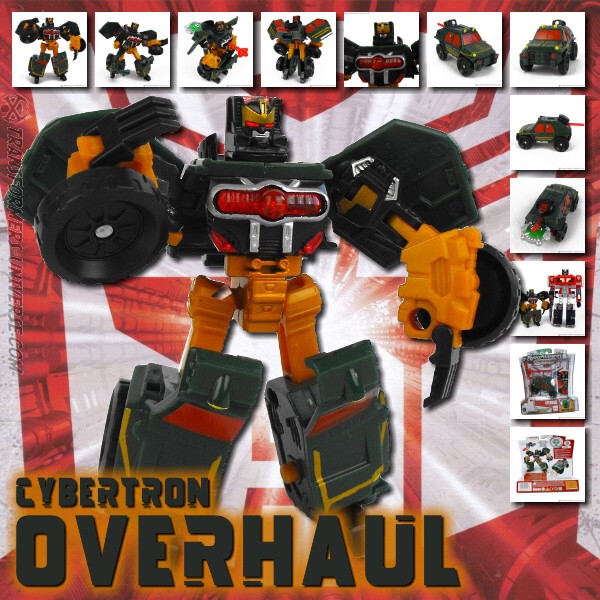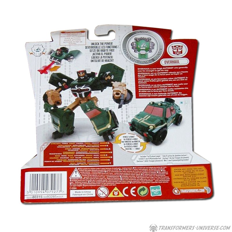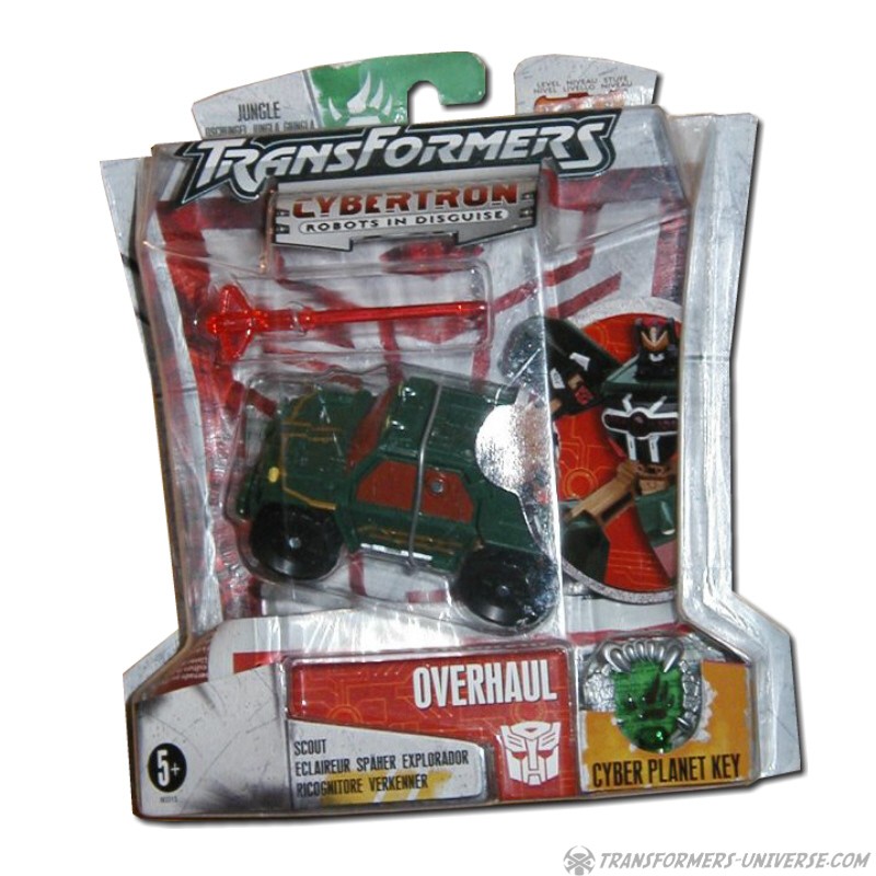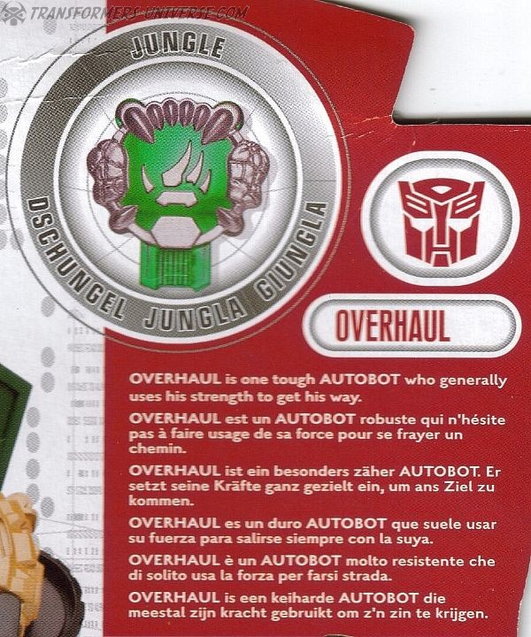 One tough Autobot, Overhaul has never thought much of intellectual pursuits. His solution to a complex problem is generally to stomp on it until it gets simple or stops being a problem. He's never felt that he's had the respect his strength deserves from the other Autobots, but now that he's on the Jungle Planet - where might makes right - he feels right at home.