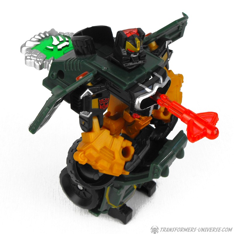 Alternate Mode: Where the robot mode was good, the vehicle mode is barely average. Again a smaller version of Energon Ironhide, the little car has very little detailing and the cyberkey gimmick is useless in this mode. You can enter the key, but since the missile is stowed away inside, nothing happens. At best an average vehicle mode, nothing more.