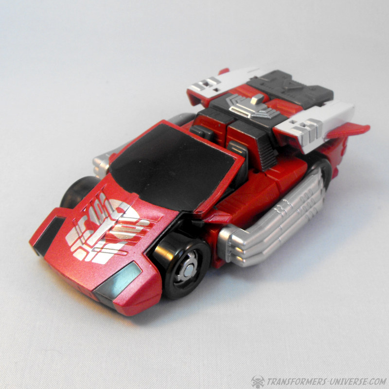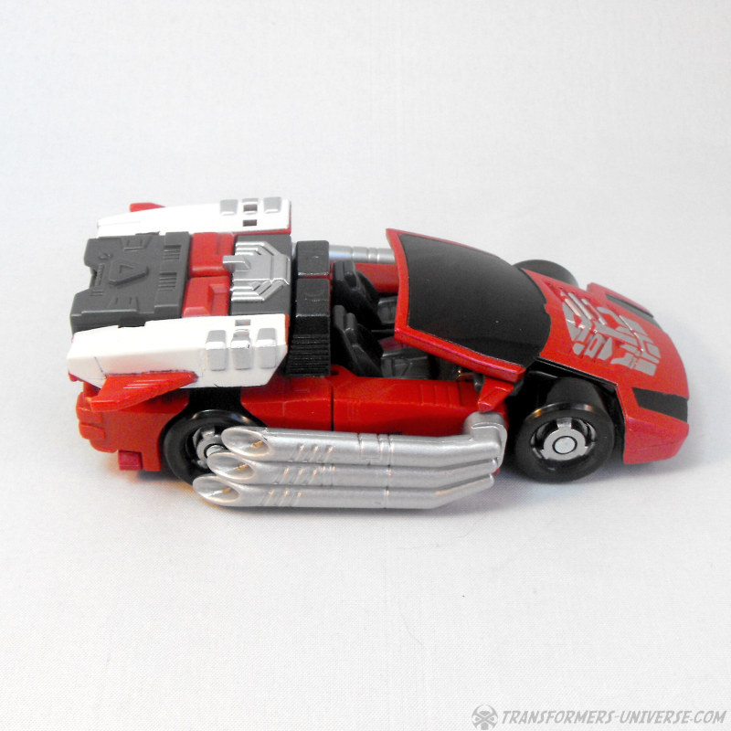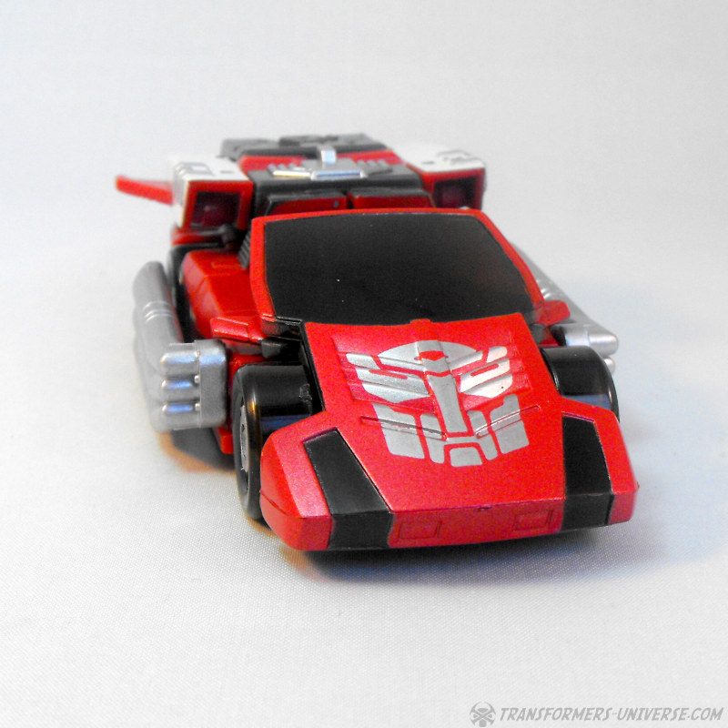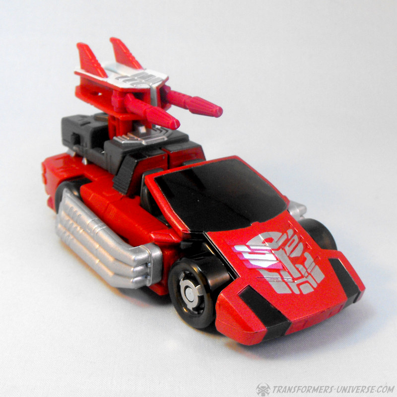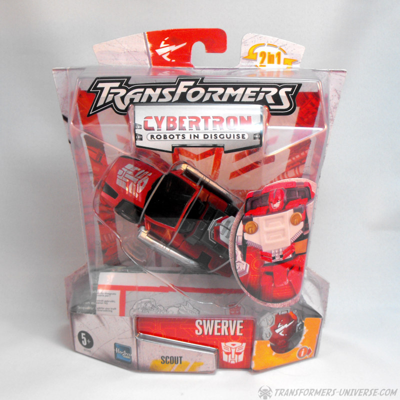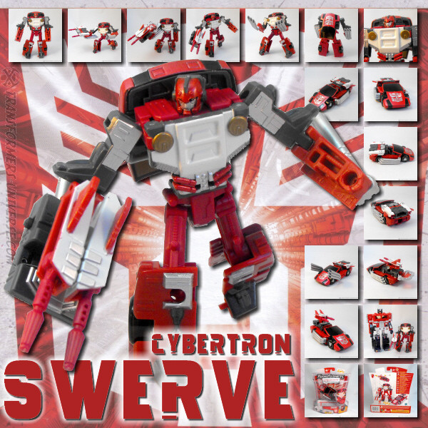 Remarks: Swerve might be better known as the eternal red repaint. Whenever a car Transformer is to be repainted and no one can think of anything better, you paint it red and call it Swerve. It happened in Generation 1, Revenge of the Fallen, Universe, Alternators, and Cybertron, too, of course. Swerve seems forever stuck being the repaint-guy (not counting the infamous Chevy Aveo Swerve).
