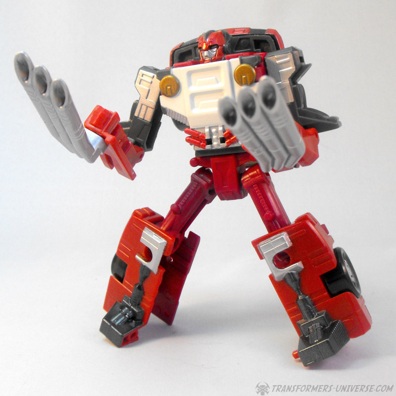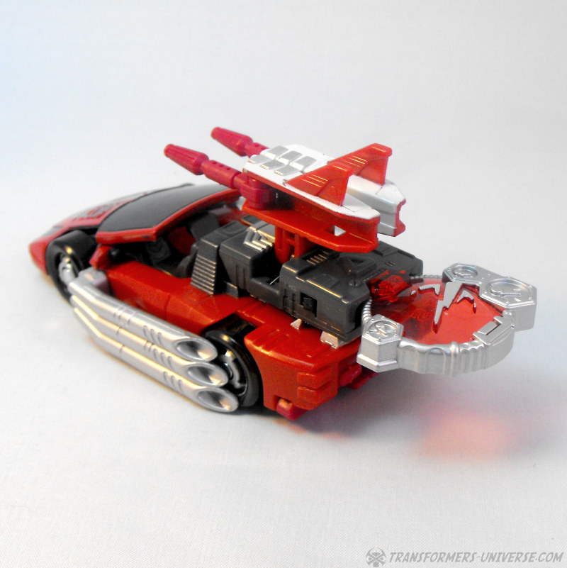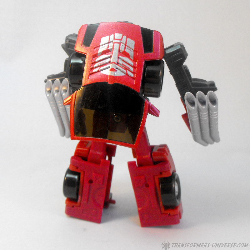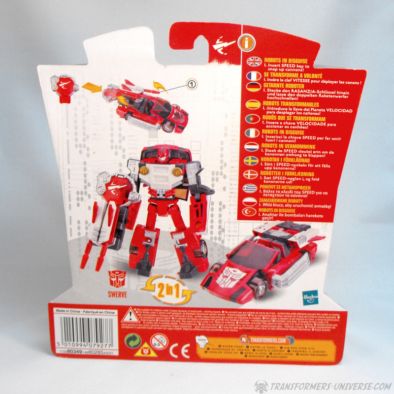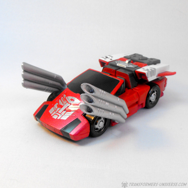 Remarks: Swerve might be better known as the eternal red repaint. Whenever a car Transformer is to be repainted and no one can think of anything better, you paint it red and call it Swerve. It happened in Generation 1, Revenge of the Fallen, Universe, Alternators, and Cybertron, too, of course. Swerve seems forever stuck being the repaint-guy (not counting the infamous Chevy Aveo Swerve).
