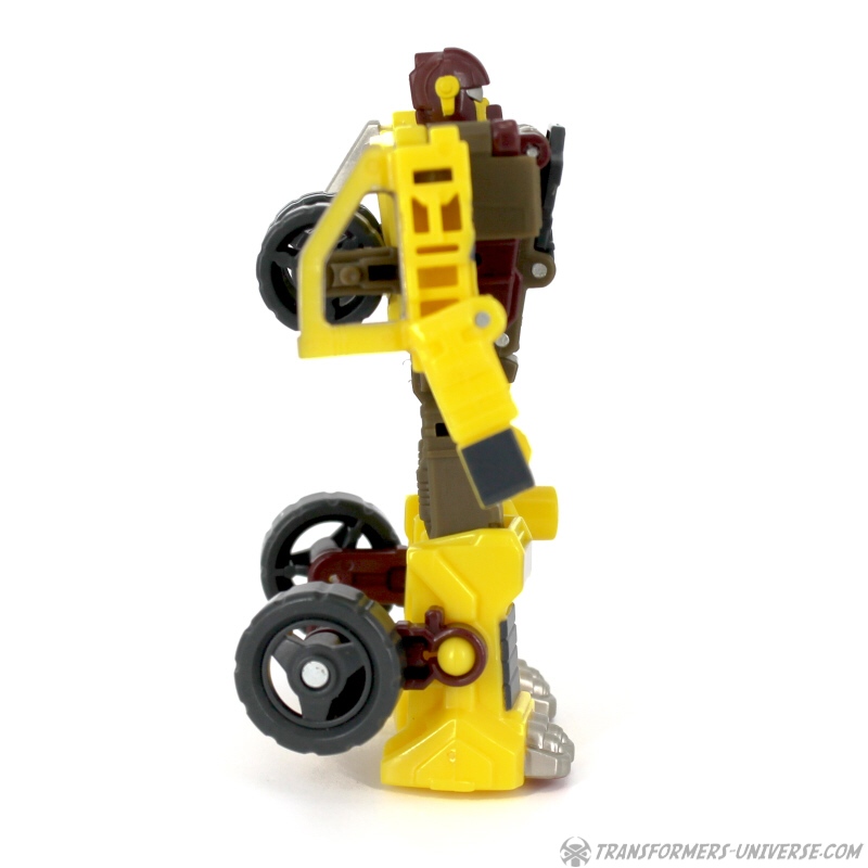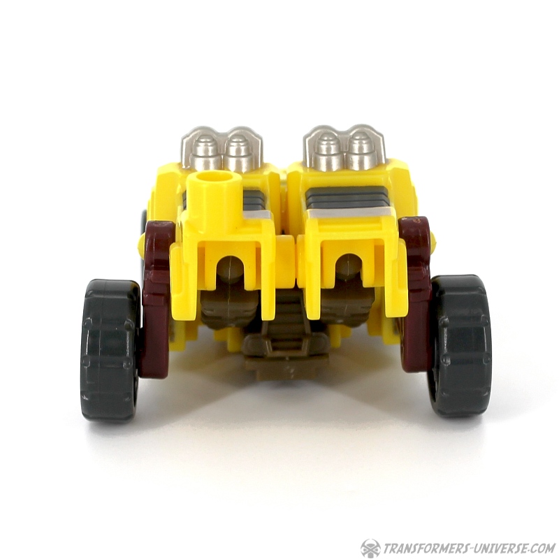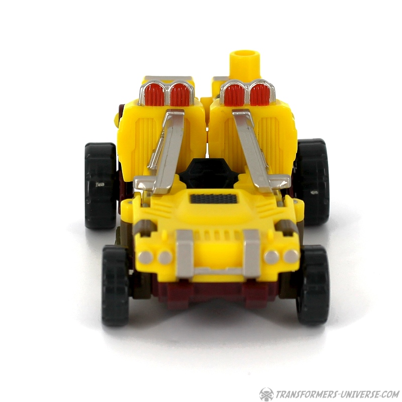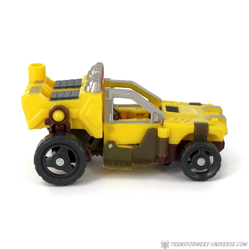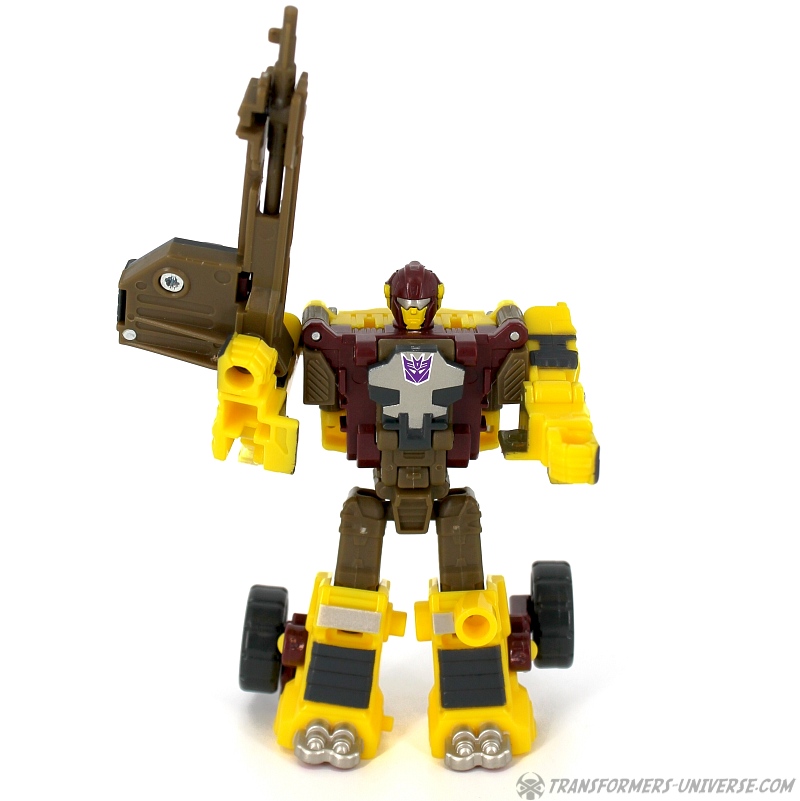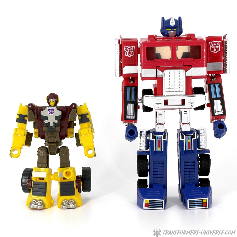 Remarks: Swindle here is a straight-up repaint of Cybertron Hardtop, whom I have reviewed before. No tooling changes, just a simple new paint job and a new name, too. Despite carrying the name of the G1 Combaticon, Cybertron Swindle is nothing like his famous predecessor, but rather a brawler who just wants to fight. He never appeared in the cartoon, only in the text story "Force of Habit" from the Transformers Collectors Club.