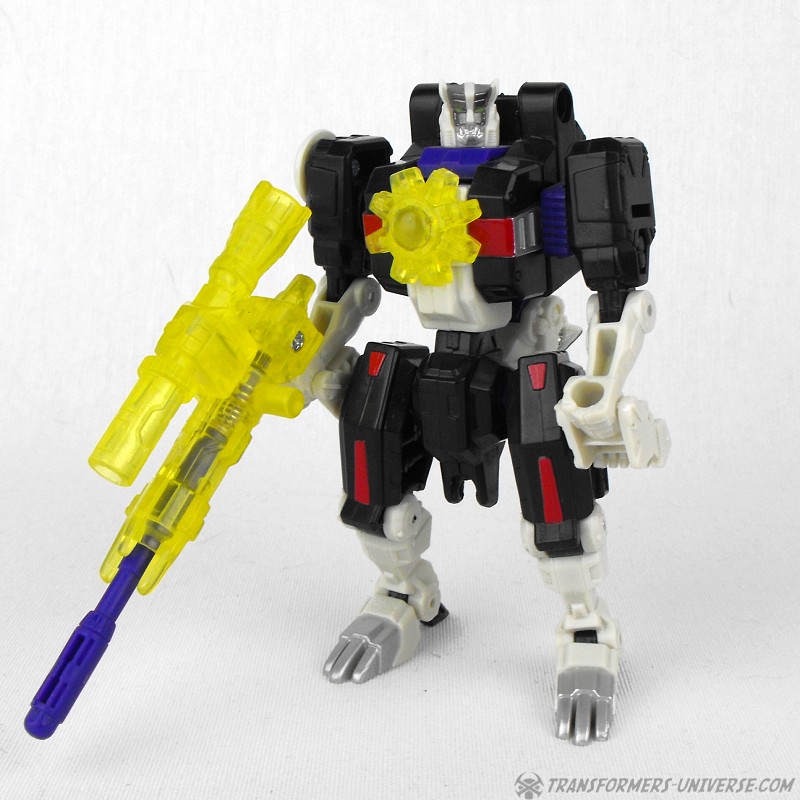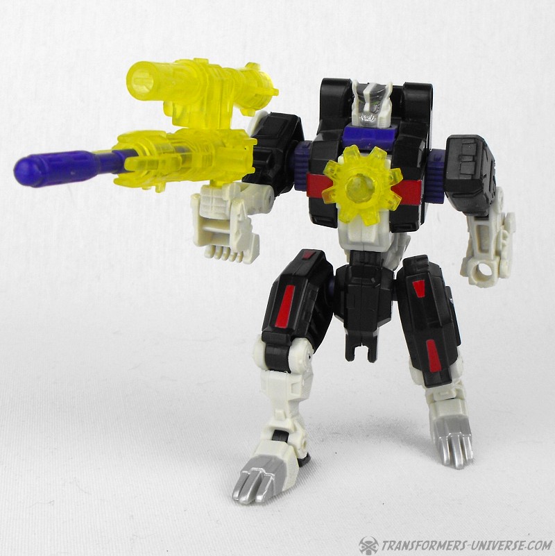 Robot Mode: A basic-sized robot, Battle Ravage features good detailing and posability for his weight class. The hands bug me a bit, or rather the folded back beast mode claws do, but that's the only minor flaw he has. Okay, and the head doesn't look too hot, but apart from that he's looking pretty cool. His large Energon weapon can either be combined into a big, G1 Megatron-style gun, or used separately as two weapons that can fit onto his shoulders. A decent robot mode.