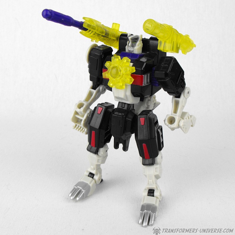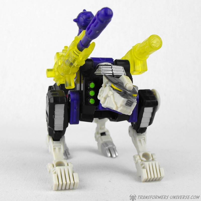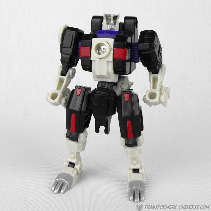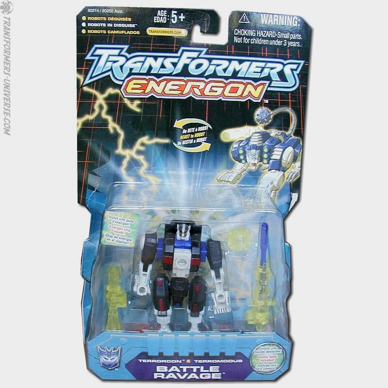 Remarks: One of the Terrorcon drones, this figure appeared in massive numbers in the Energon cartoon. It doesn't really have anything to do with the classic G1 Ravage, they simply reused the name for a cat-like beast Transformer. For a basic-sized toy Battle Ravage is pretty good with only very few flaws and a solid design. Not a classic, but definitely a good figure to bulk up your Decepticon forces.