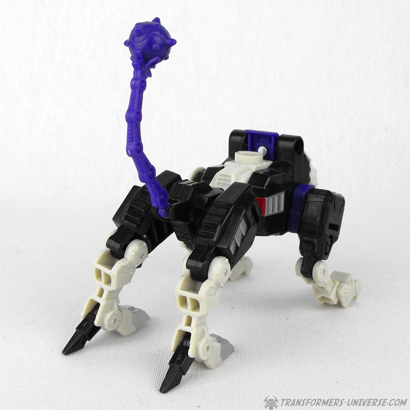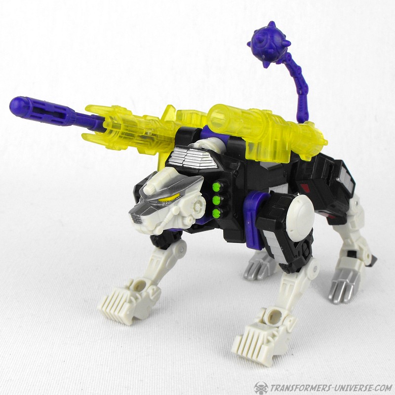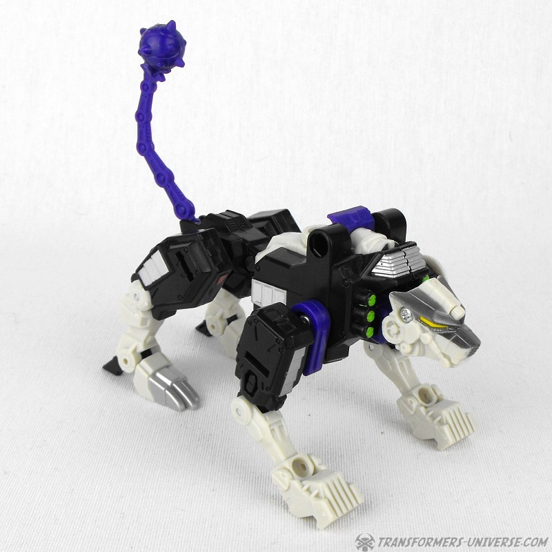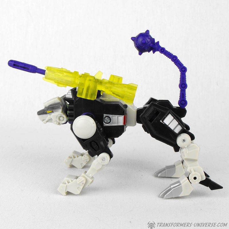 Beast Mode: Battle Ravage transforms into cougar. The transformation isn't terribly difficult and the resulting beast looks very much like the robot, but still makes a decent animal. The hands / forepaws still bug me a bit, but apart from that I have no complaints about this mode. His morning-star tail and fully posable beast-head are nice details and he can use his Energon weapons in this mode as well. The posability is also quite good, resulting in a very decent beast mode.