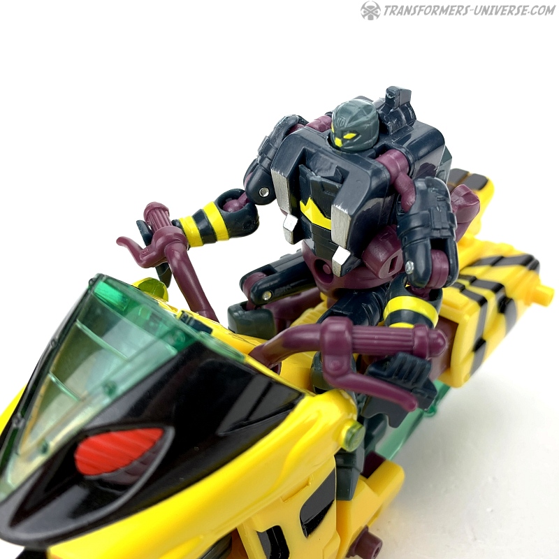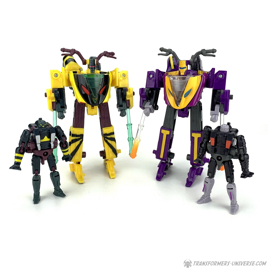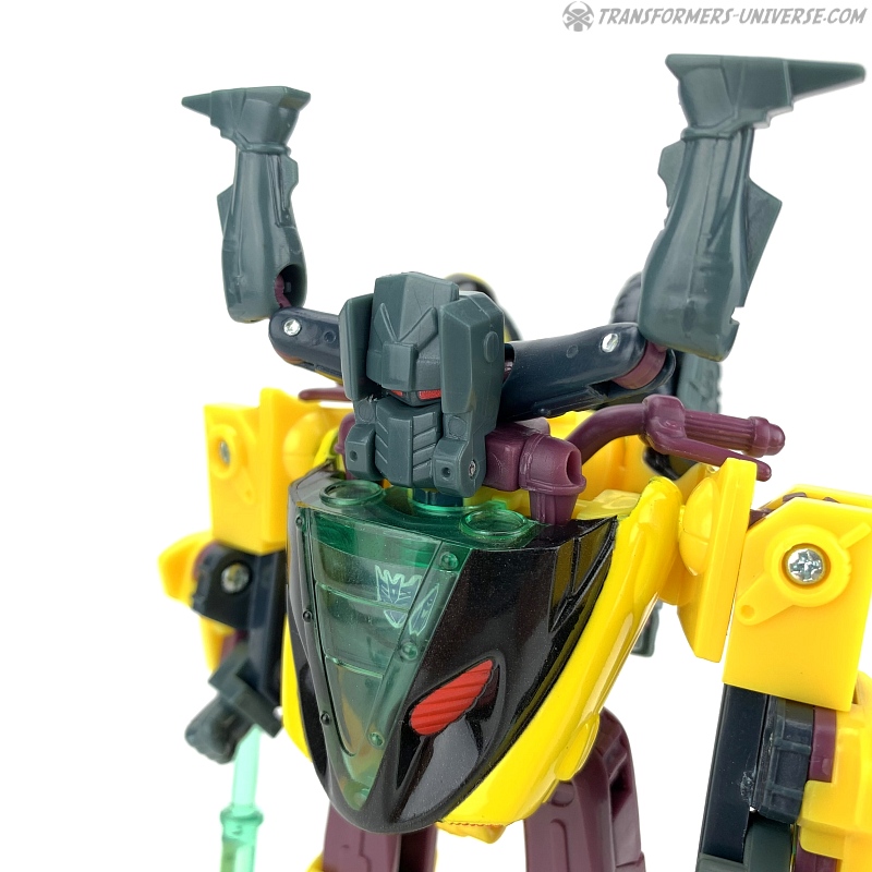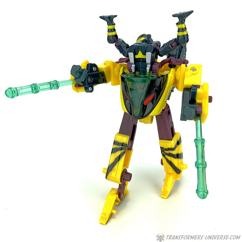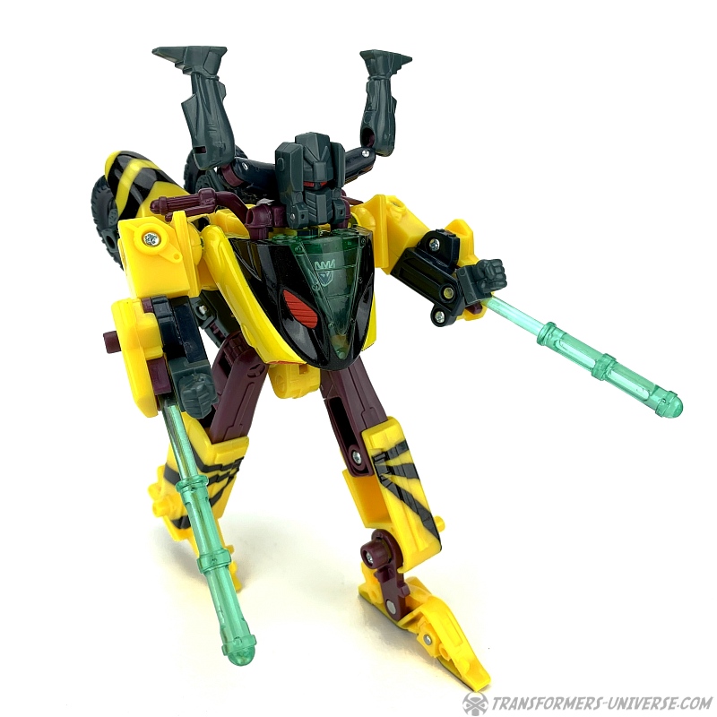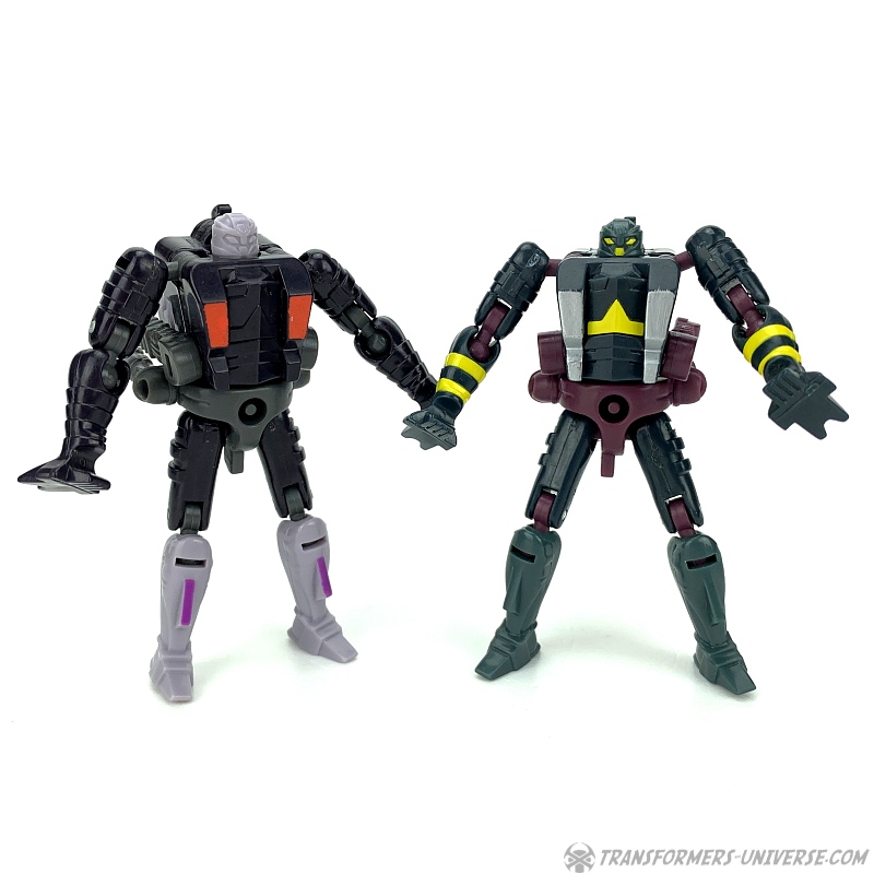 Partner: Rapid Run comes with two Mini-Cons: Nightscream (who turns into his Decepticon head) and Nightcruz (his Autobot head). The two Mini-Cons are, of course, repaints of Rook and Crosswise and, just like their predecessors, they can also combine into a larger robot called Nightcreeper. Not sure if there is some sort of joke here about having the Mini-Cons associated with the canary-yellow Rapid Run all having ‘night’ in their name. Anyway, they are remarkably well-articulated and quite large for Armada-era Mini-Cons and while they might look a bit disproportioned, they work pretty well. Both the head and combiner mode are nicely done. So bottom line: great Mini-Cons, though mostly useless without Rapid Run.