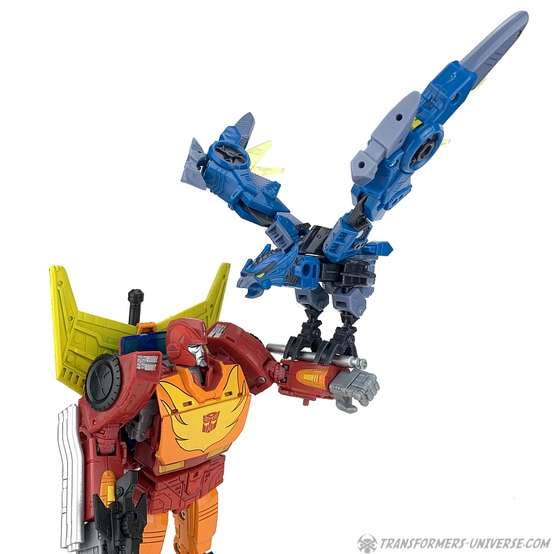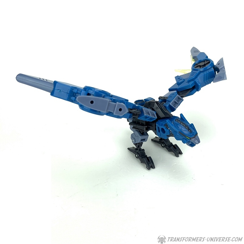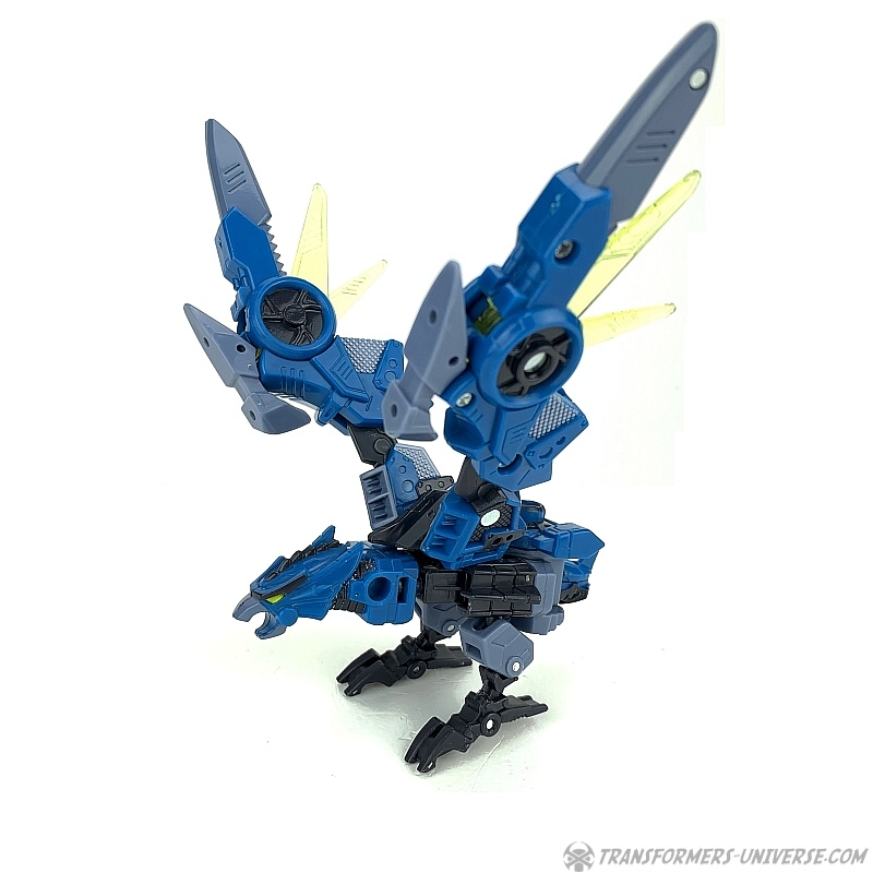 Alternate Mode: Shadowhawk’s transformation is simple, yet surprisingly effective. The robotic bird’s large wings unfold from his robot legs, the arms form the bird head and neck, while the robot head becomes the tail. The bird is amazingly well-articulated, being able to move his wings and feet in all sorts of ways. Only its neck and head are fixed, but that’s not really an issue for me. The ‘claws’ of the feet make it so that Shadowhawk can easily perch on the arm or shoulder of a larger Transformer, too.