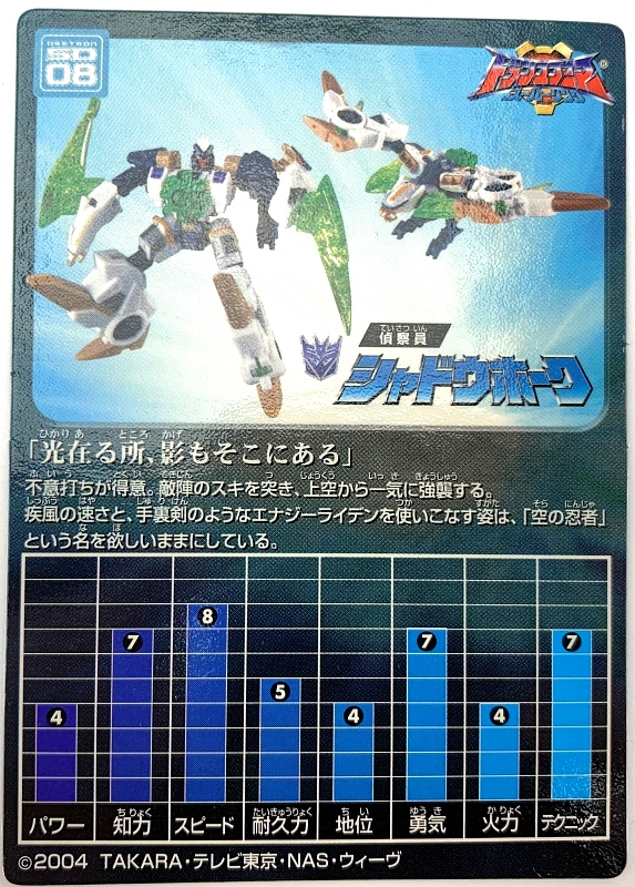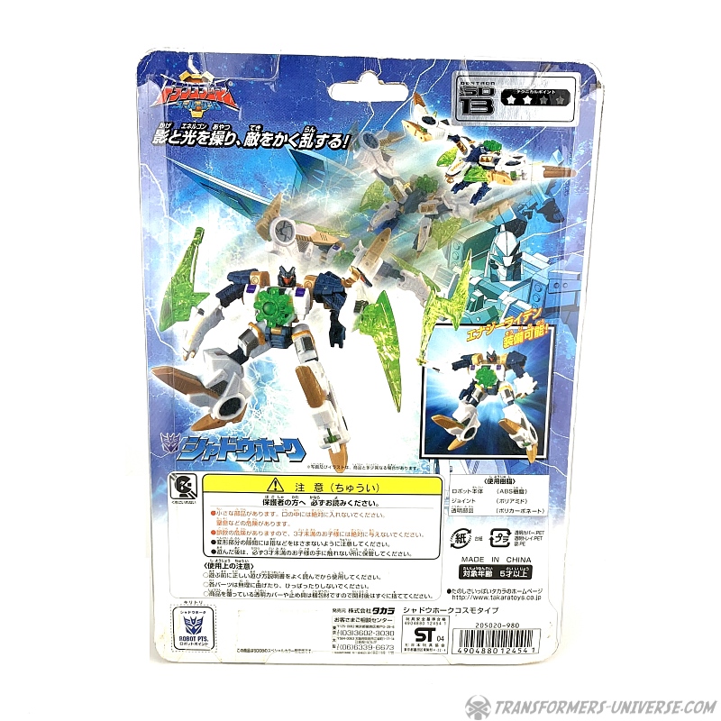 Prelude: When most people hear the term ‘Terrorcon’, they are thinking of the G1 combiner team of the same name. In Energon, though, the term was used to describe the endless hordes of Energon-stealing Decepticons loyal to Unicron. One of them was Divebomb, who remains one of my favorite figures to this day. And while Hasbro never gave us a repaint of him, Takara did release Cosmo Type Shadowhawk. And since my original review of Divebomb is already seventeen years old, I think we can take the time for another full review for this repaint here. Let’s say go!