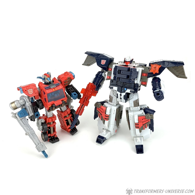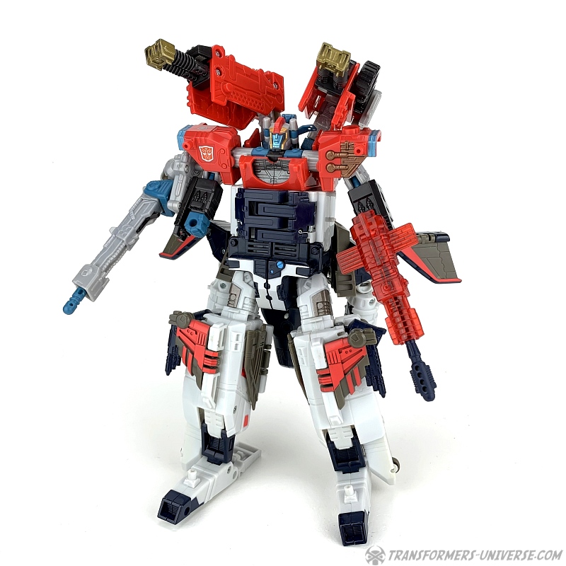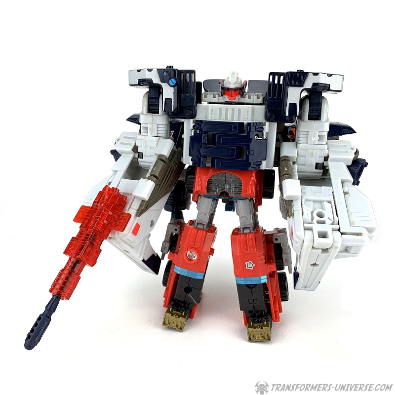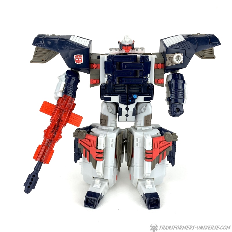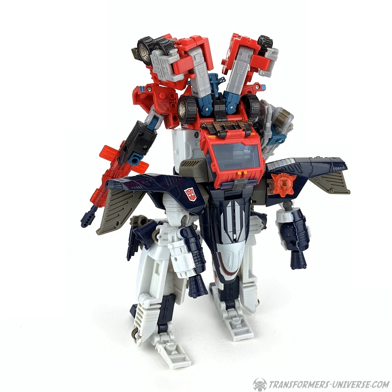 Combiner Mode: Like most Energon Autobots, Skyfire, too, is built around a combiner gimmick. He can become either the upper or the lower body of a two-robot combination.