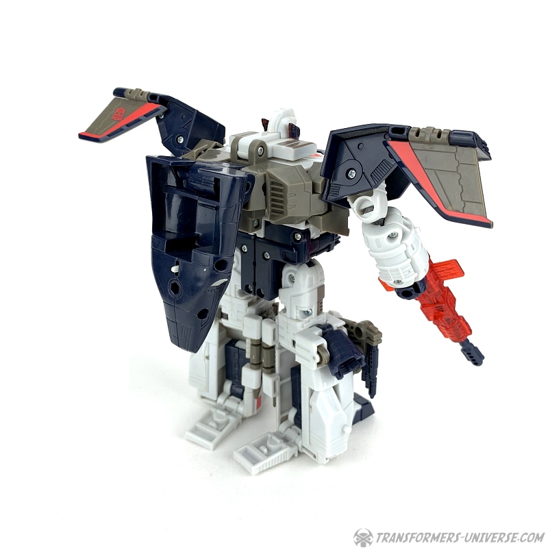 So bottom line for the robot mode: he looks cool and I really like this paintjob (which resembles Armada Powerlinx Jetfire) a lot more than the original rust-colored one. The robot does have some limitations, though.