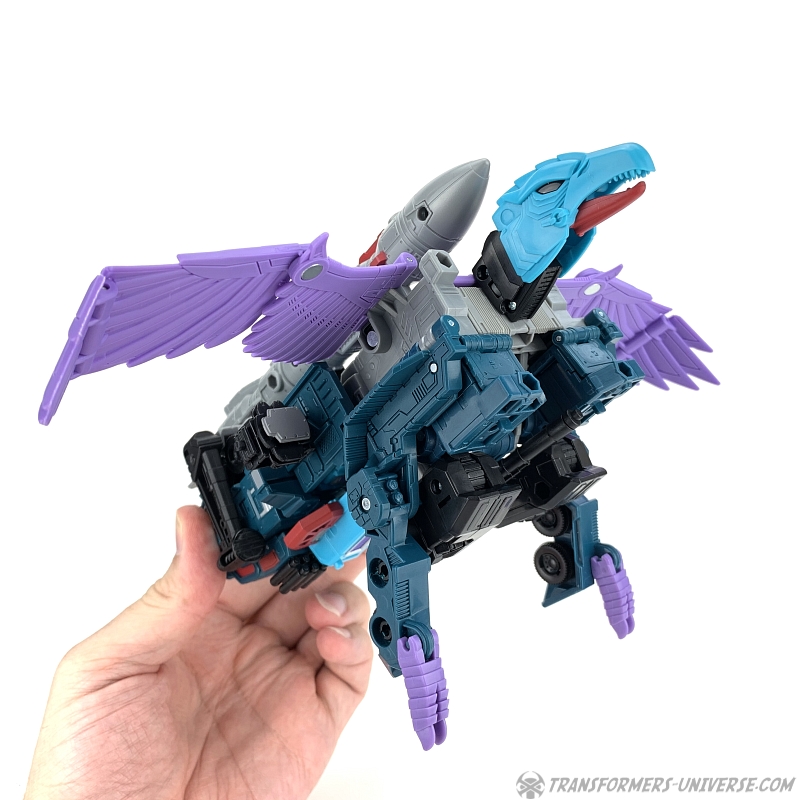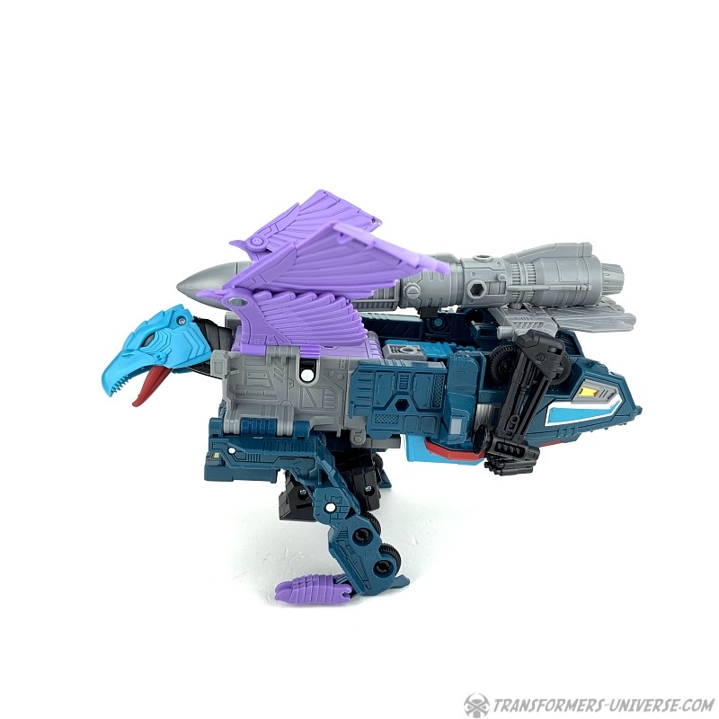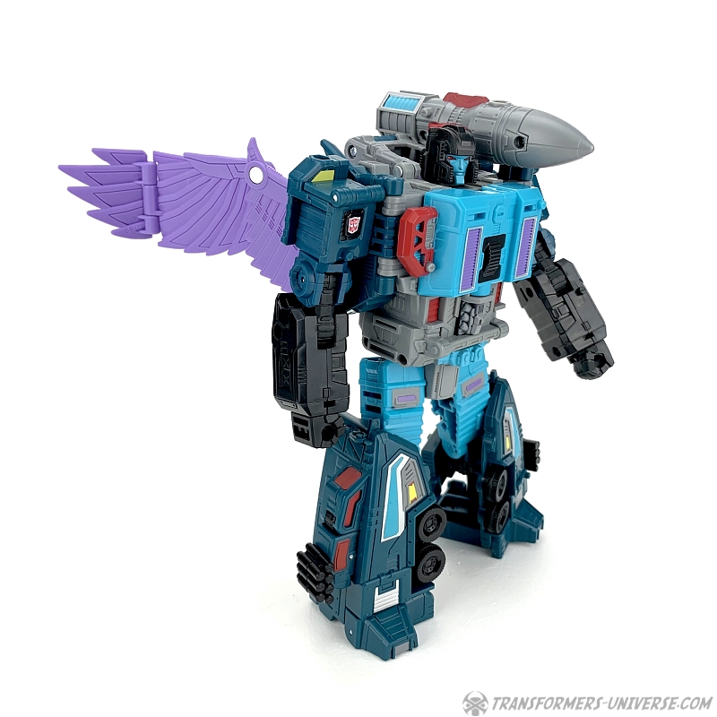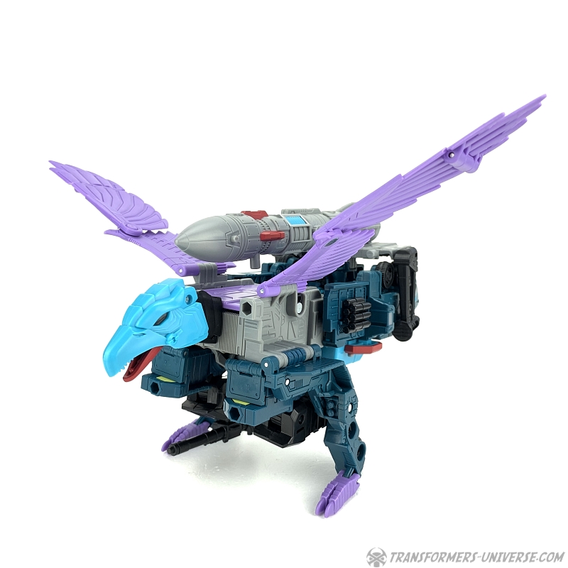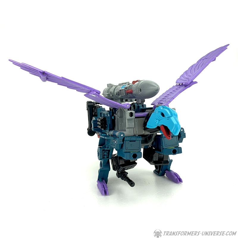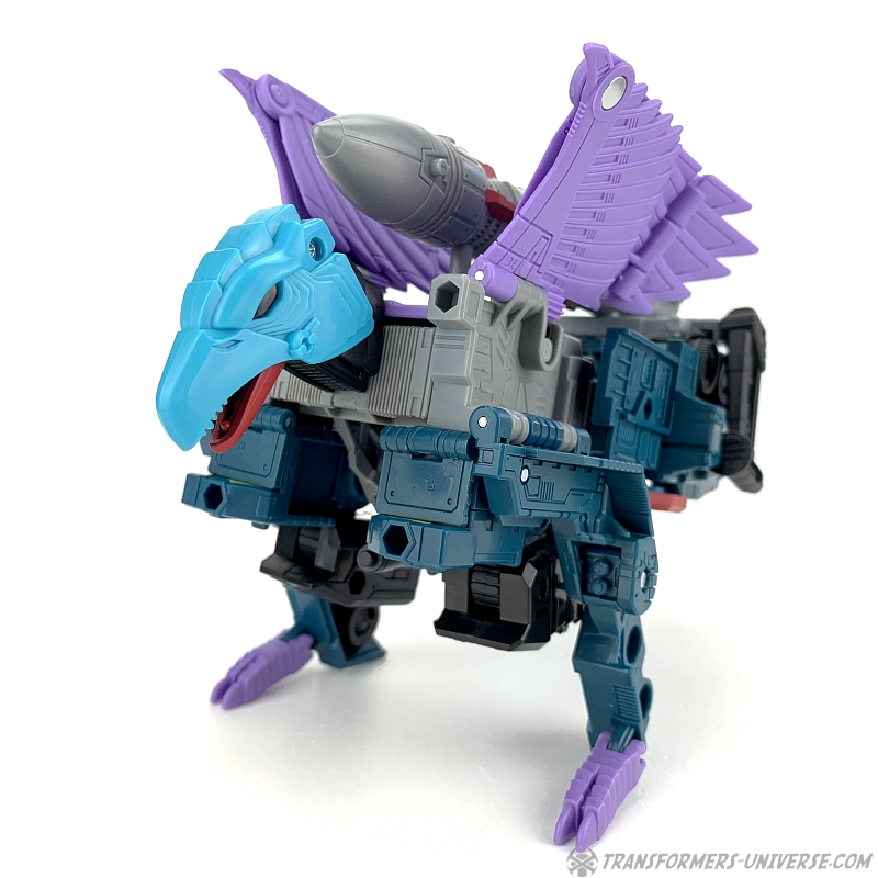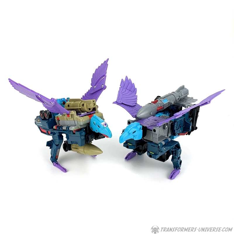 The only slight downside to this mode is the (detachable) rucksack he carries, which really serves no function here, but can get in the way of the shoulder-mounted weapons. Also, he can kind of spread his bird mode wings in robot mode, too, but it doesn’t really look that good. Apart from that, though, no complaints. An excellent robot mode.