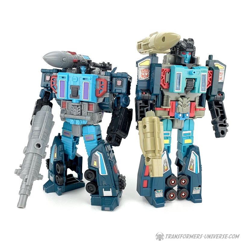 As one expects from a modern figure, the range of motion is far better than the original had. Double Dealer can pose without any real restrictions, right down to double elbow joints and twisting wrists, so no complaints here. The sculpting on the figure looks very good, too. While the modern Double Dealer is not a Powermaster like the old figure was, he replicates the look of the engine plugging into his stomach with a sculpting. Unlike the original figure, the blue panel on the chest opens up instead of being a detachable (and easy to lose) extra part and offers room for a War for Cybertron style cassette (which his original Powermaster partners Skar and Knok have been recreated as).