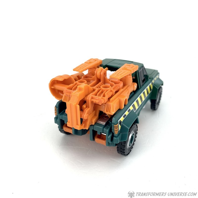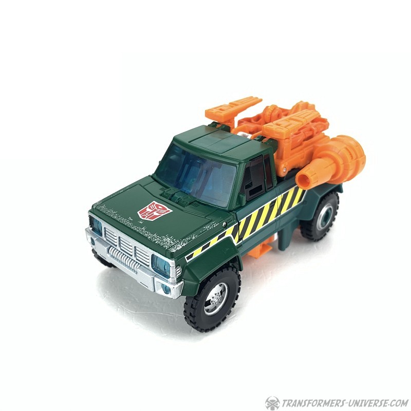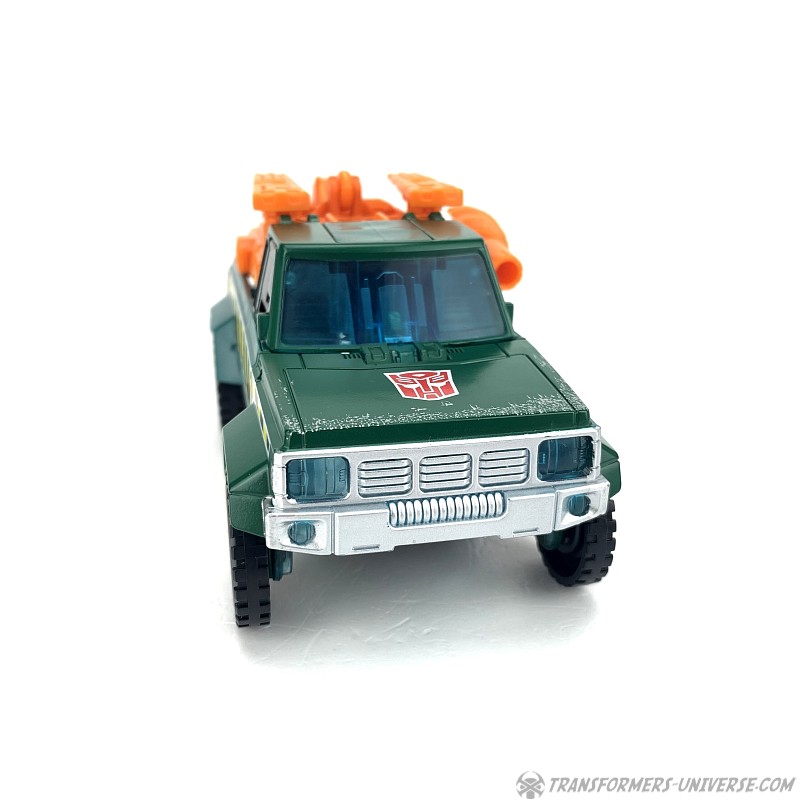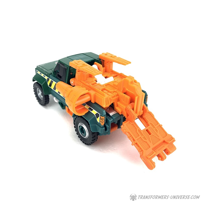 Alternate Mode: The original Hoist transformed into a Toyota Hi-Lux pickup truck. The Earthrise version transforms into a vehicle that looks very much like a Toyota Hi-Lux pickup truck without having to dish out cash for that pesky license. The car is green and features an orange “towing setup” on the back, which enables it to tow other cars. The rear end of this towing ramp is designed to interlock with the ramps of other base mode Transformers from that time.