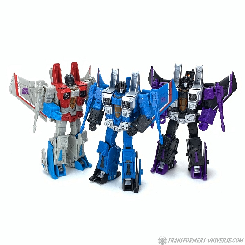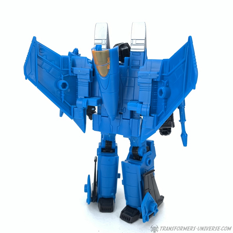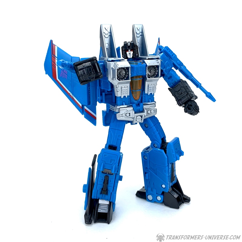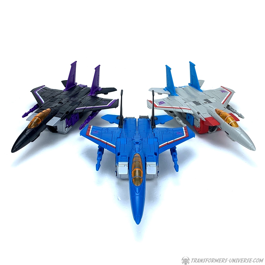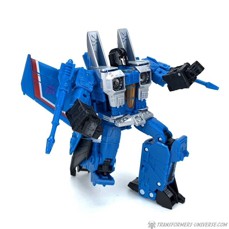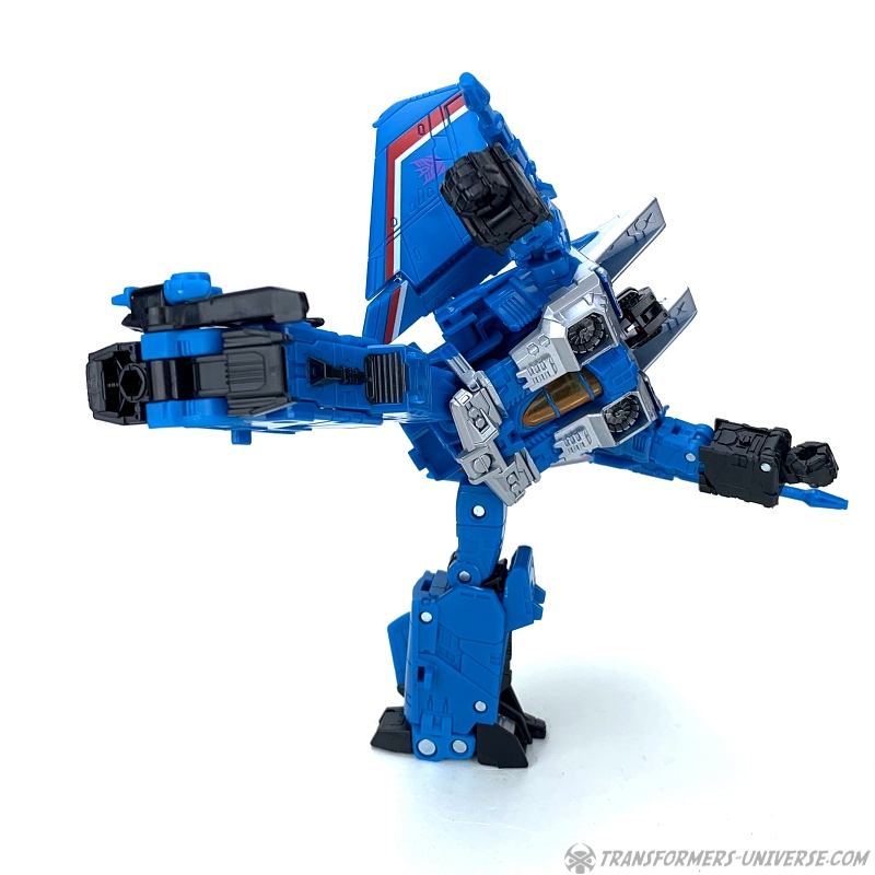 Thundercracker is, of course, yet another repaint of the Earthrise Starscream figure in the traditional Thundercracker colors. While Cracker was always my favorite in terms of character among the Seekers, the figure itself is really just another repaint. If you like the figure in Starscream and Skywarpcolors, you will like it as Thundercracker, too. Just don't expect to see anything new here.