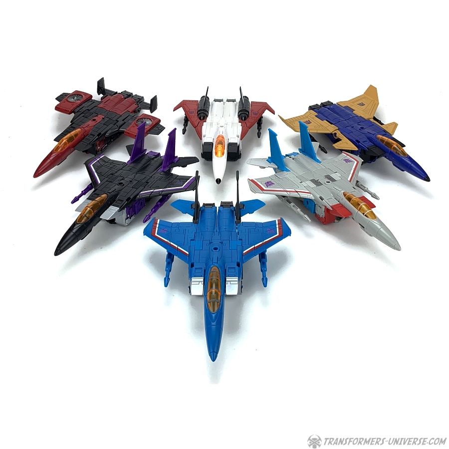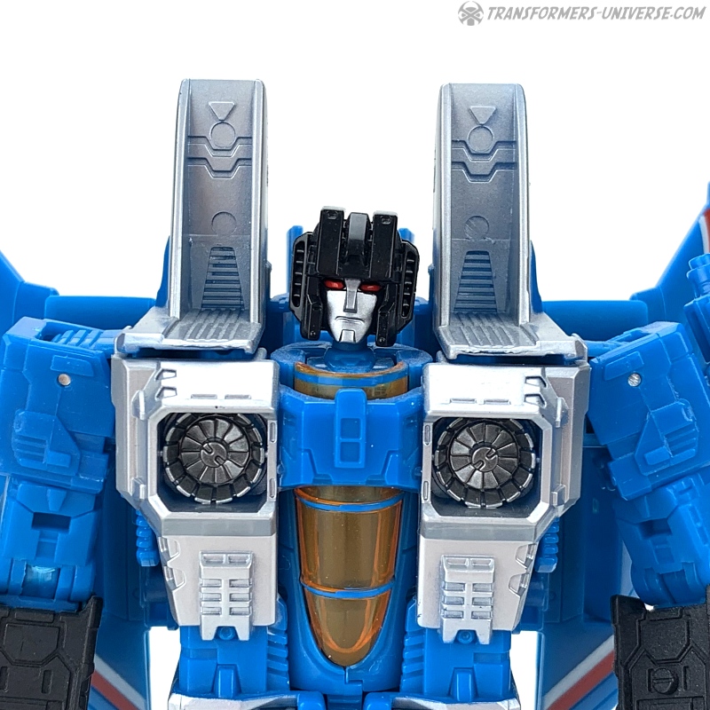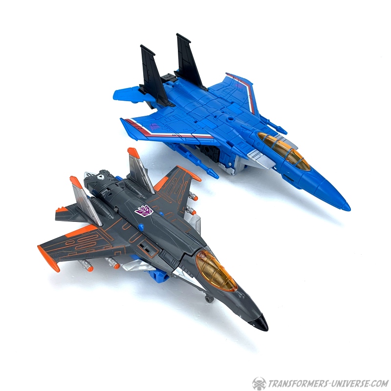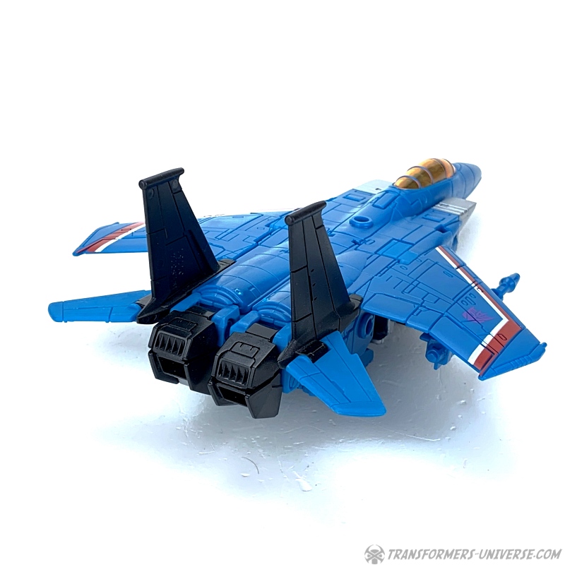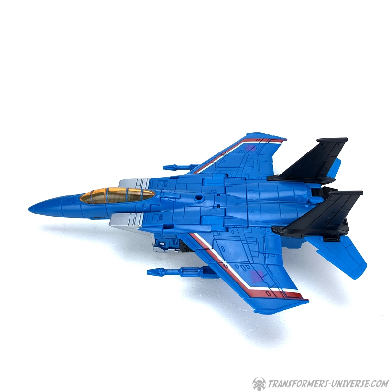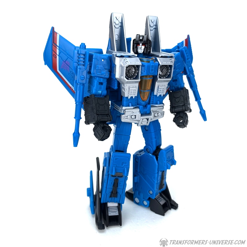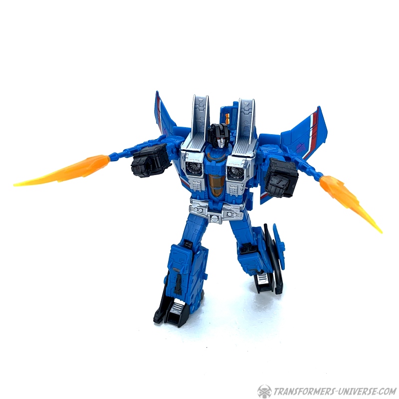 Thundercracker is, of course, yet another repaint of the Earthrise Starscream figure in the traditional Thundercracker colors. While Cracker was always my favorite in terms of character among the Seekers, the figure itself is really just another repaint. If you like the figure in Starscream and Skywarpcolors, you will like it as Thundercracker, too. Just don't expect to see anything new here.