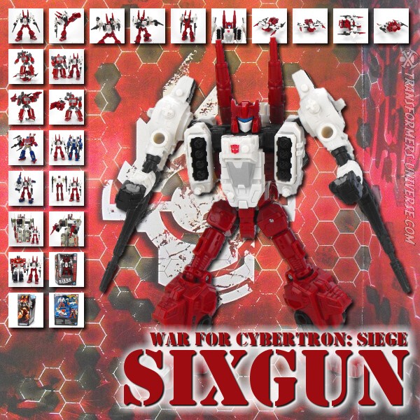 Prelude: Sixgun is the original Weaponizer, just so you know. The very first Transformers robot assembled from several different weapons. That’s pretty much his entire claim to fame, of course. He’s the guy assembled from G1 Metroplex’ weapons, that’s it. Much like with Cog, no one ever figured we’d see him return, except maybe as some third party add-on for the Titan-class robots. But return he did in War for Cybertron Siege. Let’s see what he’s made of (except weapons, I mean).