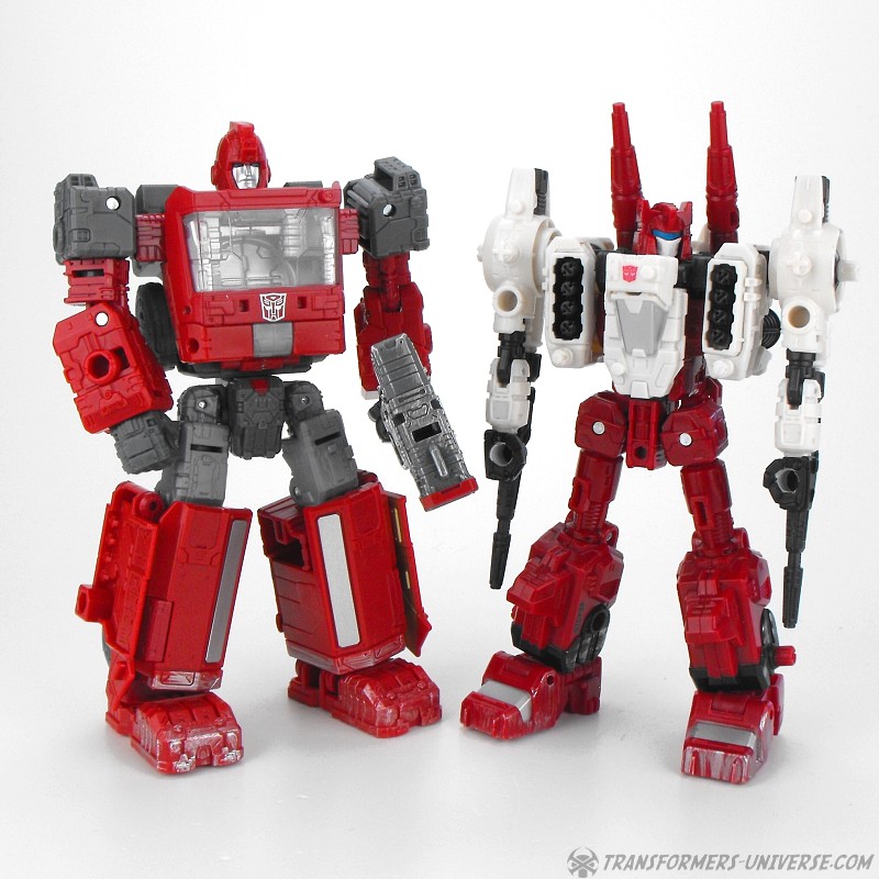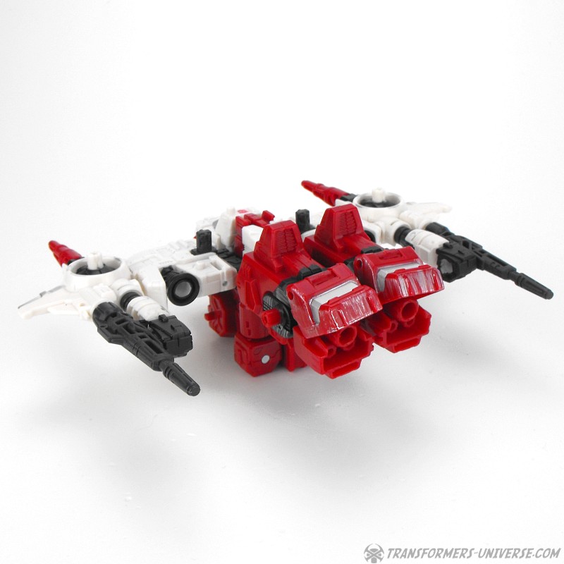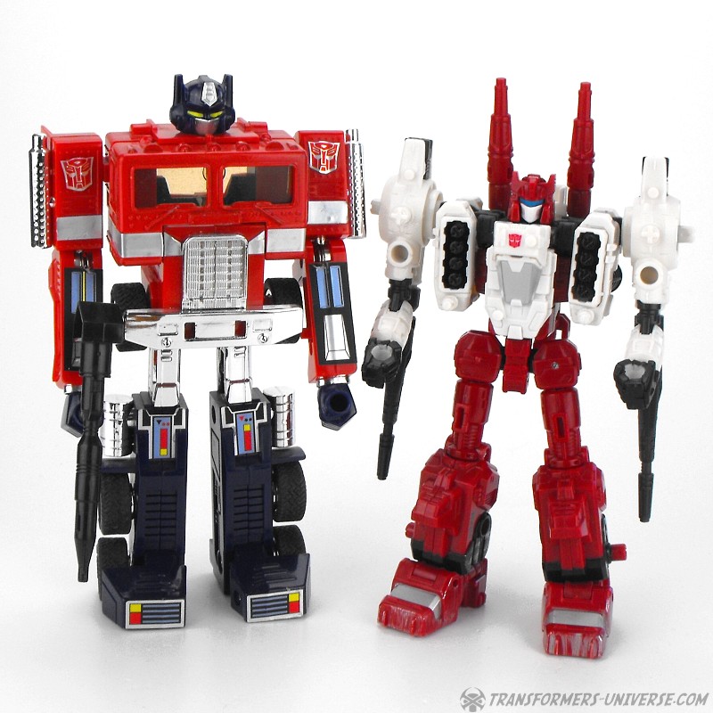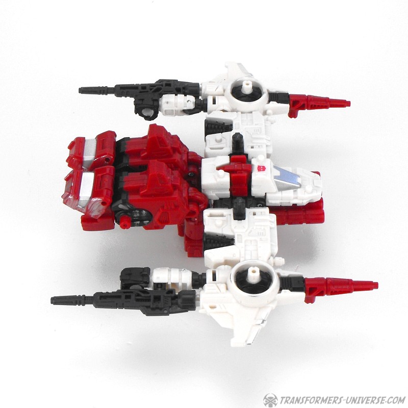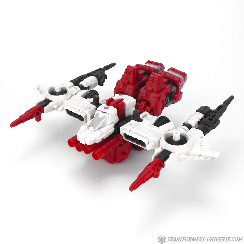 The actual point of Sixgun is, of course, that he can disassemble into a number of weapons and accessories. Chief among them the red rifles that Metroplex used to carry, which are formed from Sixguns’ legs, as well as the black-and-white guns that form his arms. The tips of each rifle are separate pieces that can be swapped or used individually. His torso becomes a white shield of sorts and his back is a blocky four-barreled blaster of some sort. Now technically Sixgun doesn’t actually become six guns, but there are so many possible variations here that you can easily assemble six different guns if you must.