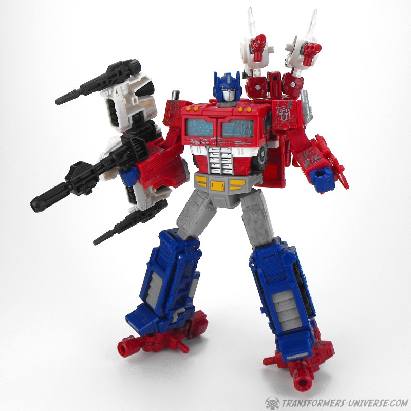 As mentioned above there are quite a few possible variations for the weapons Sixgun becomes. See the pictures above for just a few possibilities. Something I do want to mention is the possibility of using his torso modules as a kind of huge glove to put on a Deluxe-class figure. A very nice idea. Apart from that, though, use your imagination. Sixgun in weapon mode offers tons of variations and lots of play value. Have fun!
