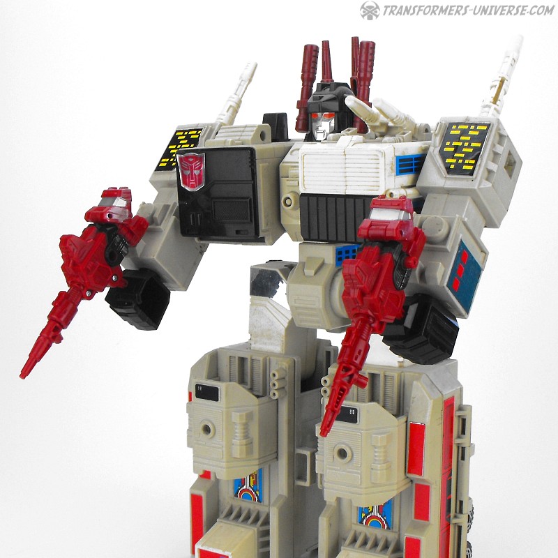 Remarks: Sixgun has but a single in-media appearance to his name (not counting the times he was present in the form of Metroplex’ weapons), namely in the third-season episode “Thief in the Night”. He served as main inquisitor for the Dinobots, as they were under suspicion of having made off with Fort Knox. The most amusing part of it was Sky Lynx taking offence at being called a Dinobot, too. Sixgun never appeared anywhere else afterwards, though several third party versions of him were made once Thrilling 30 Metroplex came out.